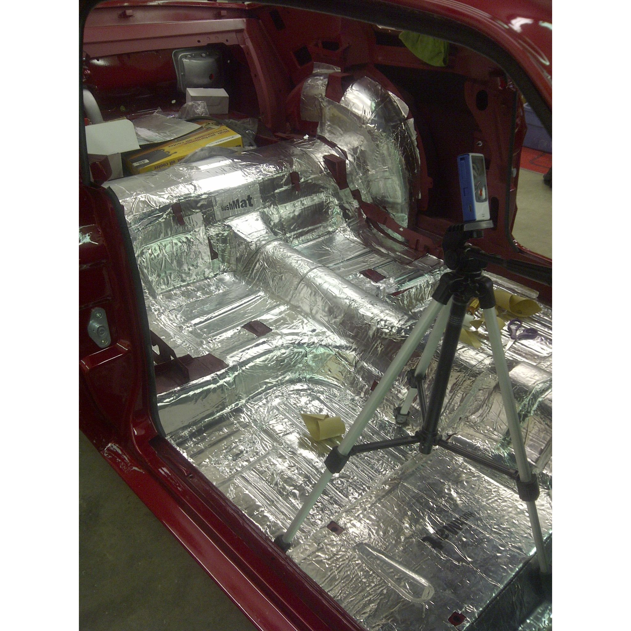 HushMat Year, Make and Model Vehicle Insulation kit sound deadens the interior of the firewall, floor, doors, roof and rear wall. HushMat packages the the appropriate amount of sound deadening material required for your vehicle.