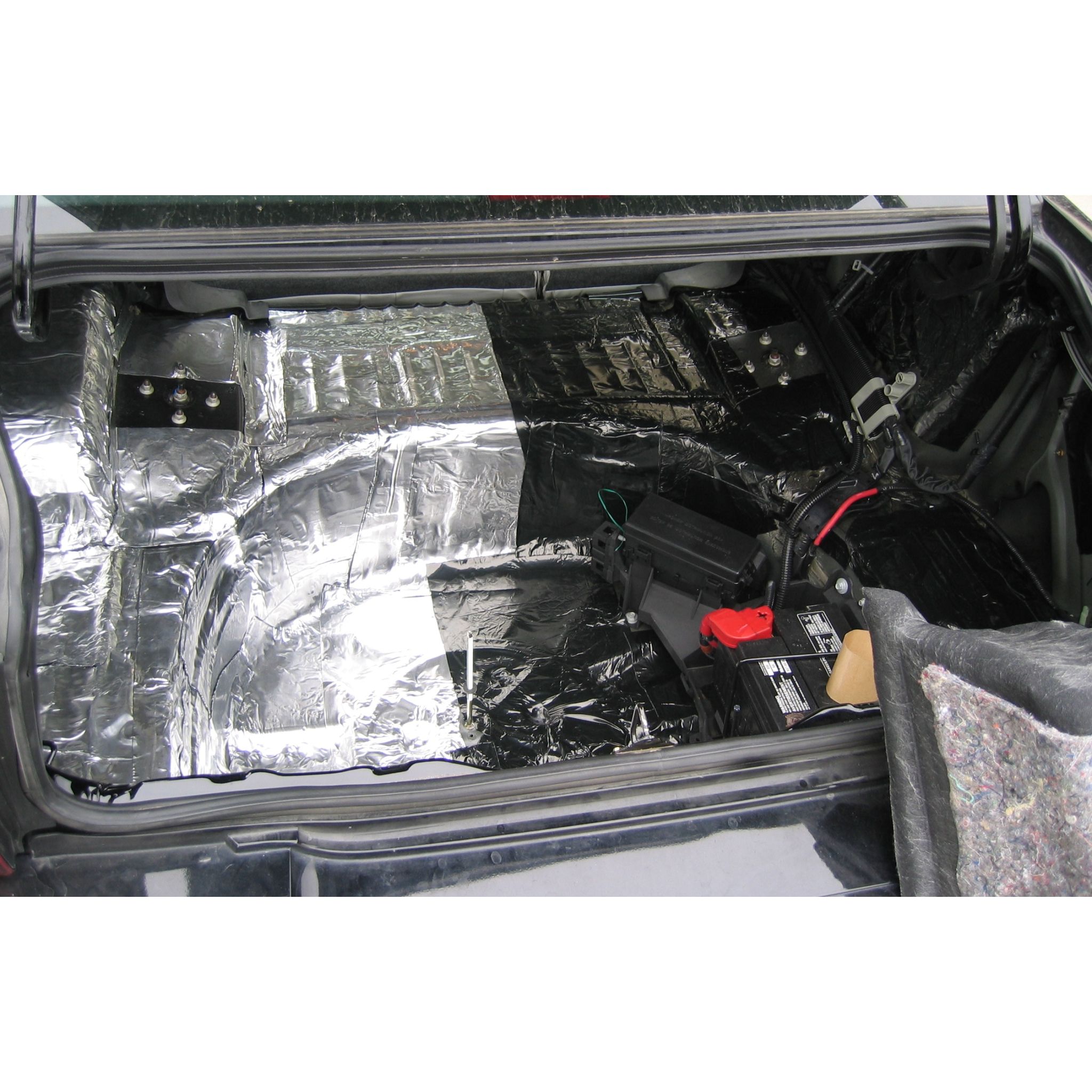Hushmat Custom Vehicle Sound Deadening and Thermal Insulation Trunk Kit treats the floor, rear quarter panels and trunk lid.