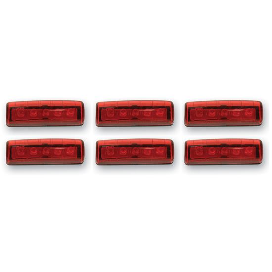 Perfect for a variety of uses on cars, trucks, suv's, toy haulers and trailers, these compact yet bright 5 Diode red Mini L.E.D.'s increase visibility in all conditions and feature a simple two wire hookup and install in a snap with 3M self-stick tape. Sold in set of 6 lights.