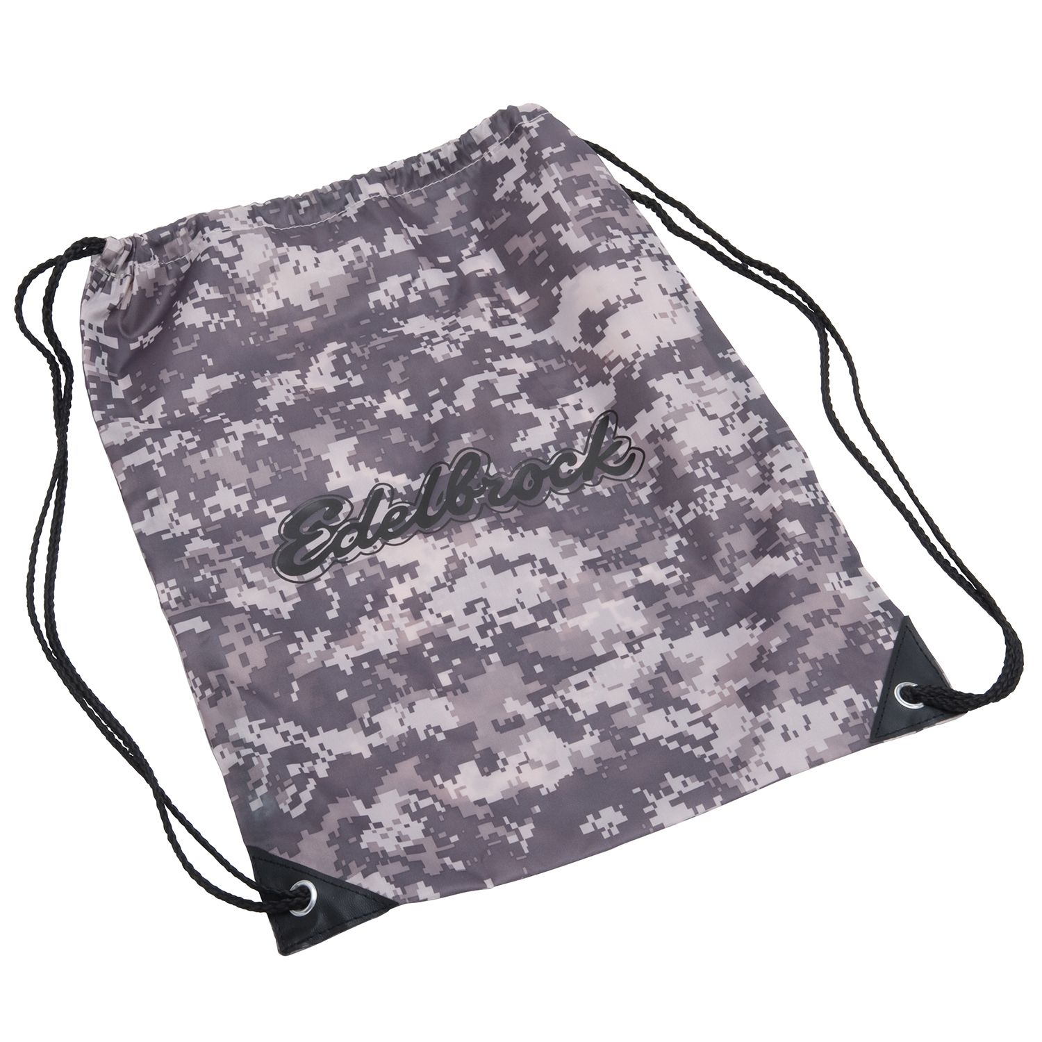 This drawstring sports tote is made of a polyester construction with reinforcement black trim at the corners. Features a screen printed Edelbrock script logo on the front. Approximate size 14" W x 18" H