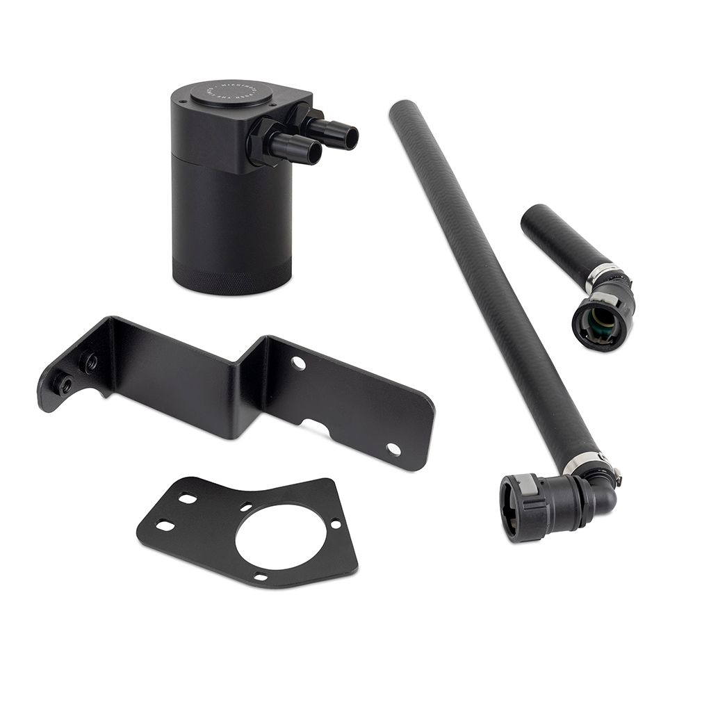 Introducing the Mishimoto Oil Catch Can kit for the 2024+ Ford Mustang GT 5.0L V8 – the ultimate solution to defend your engine against blow-by and power-robbing carbon buildup.—-With 480 horsepower and hefty 12:1 compression ratio, blow-by can cause a big problem for your Mustang. If left unchecked, blow-by can lead to detonation and decreased power. Our catch can efficiently traps and separates oil particles from the PCV system, preventing them from reaching the intake and cylinders. This safeguard ensures a cleaner, more efficient combustion process, allowing your Mustang to unleash its full potential on the road.—-Designed for hassle-free installation, this catch can installs in under an hour, allowing you to spend more time on the road and less time in the garage. The sturdy 3mm-thick bracket mounts the catch can away from engine movement and vibrations, guaranteeing longevity and reliability.—-Our catch can features fully serviceable components, including a lifetime bronze sintered filter. Every internal component can be washed and reused indefinitely, eliminating the need to replace filter media. The OEM-quality quick-disconnect fittings make installation easy and leak free. Whether you're using OEM or Mishimoto’s strut bar, our catch can fits seamlessly, ensuring compatibility with your existing setup.—-Mishimoto takes pride in the durability and reliability of our products. Backed by our Mishimoto Lifetime Warranty, you can drive with confidence knowing that your investment is protected. Choose the Mishimoto Oil Catch Can for your 2024+ Ford Mustang 5.0L V8 and experience a new level of engine performance and longevity.