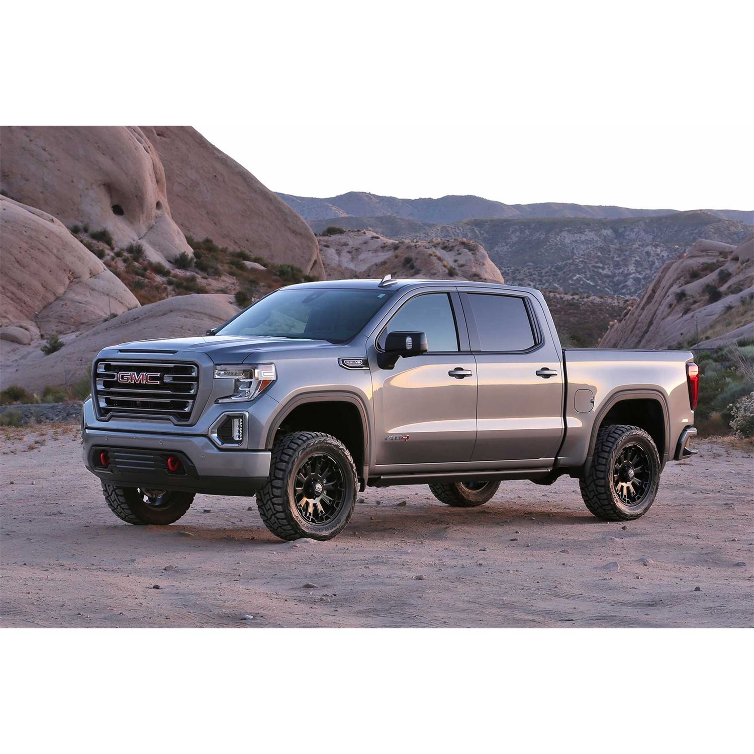 Fabtech's Upper Control Arm lift kit provides a 1.5 in. increased ride height on Trail Boss and AT4 models without creating suspension bind at full droop. These vehicles have a factory 2 in. lift. With the addition of this 1.5 in. lift kit, the vehicle will sit as high as a standard model with a 3.5 in. lift kit and clear a 33 in. tall tire.