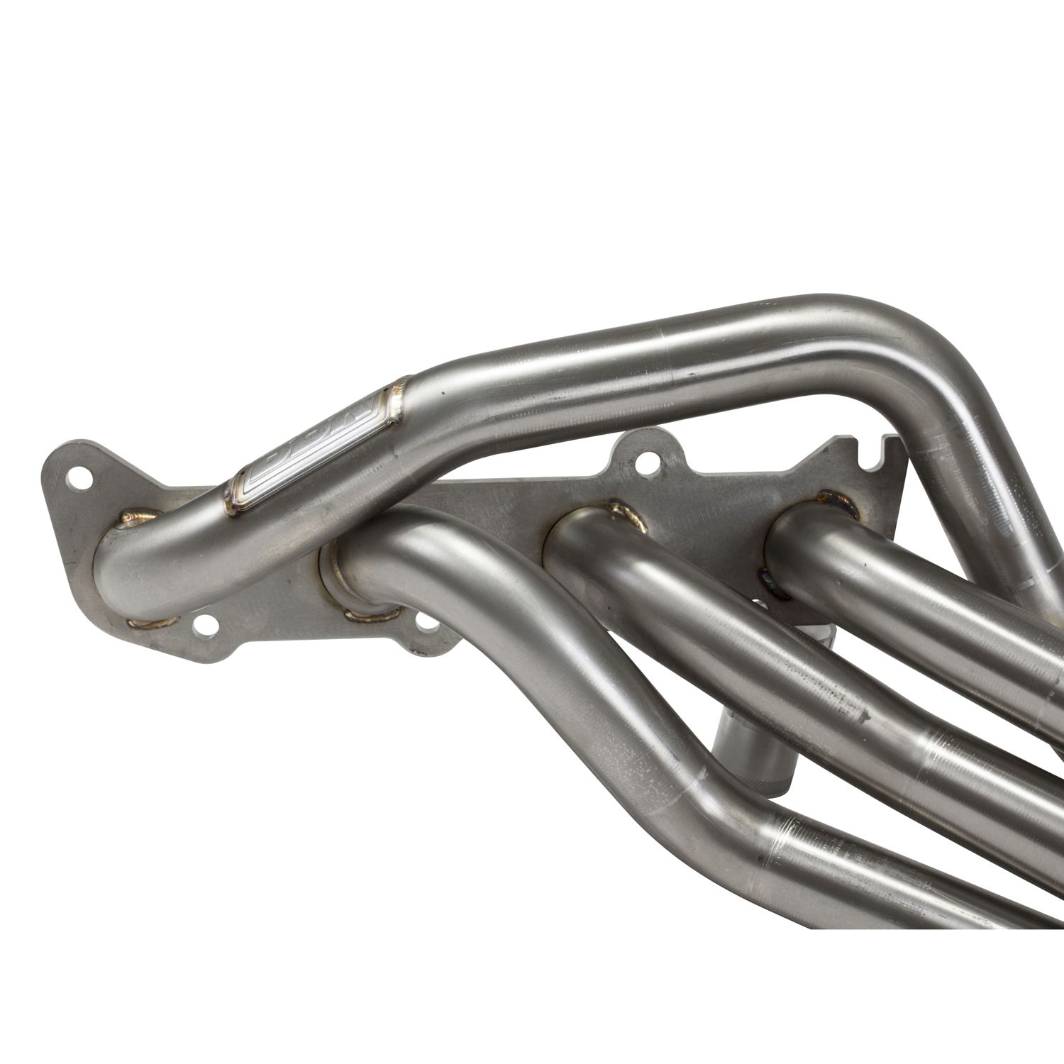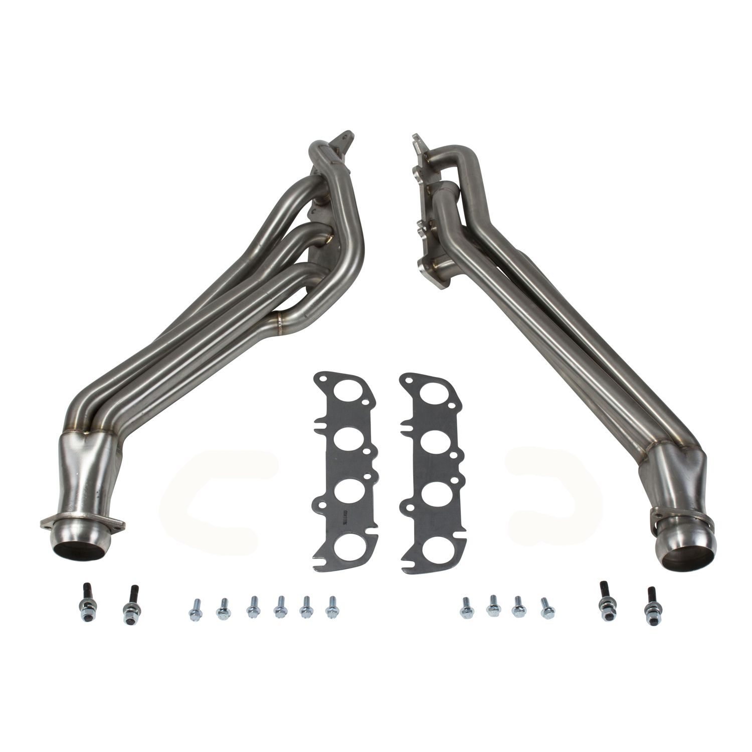 BBK Performance full length long tube exhaust headers offer unsurpassed quality and fitment using top quality materials and American craftsmanship. Every long tube exhaust header system is hand built with 1-3/4 inch CNC mandrel bent 304 Stainless tubing for unrestrictive exhaust flow, maximum performance and long life, 3/8" laser cut flanges, patented scavenging collector design and gasket less ball and socket connectors for easy installation. Every exhaust header has been designed specifically for your application to get the most horsepower and torque out of the engine. BBK long tube exhaust headers outperform the competition in quality value and performance. All headers are a direct fit bolt on replacement when used with the correct matching mid-pipes which are available with high flow catalytic converters. Our decades of exhaust design and experience make BBK Performance your number one choice for late model American car and truck performance exhaust.