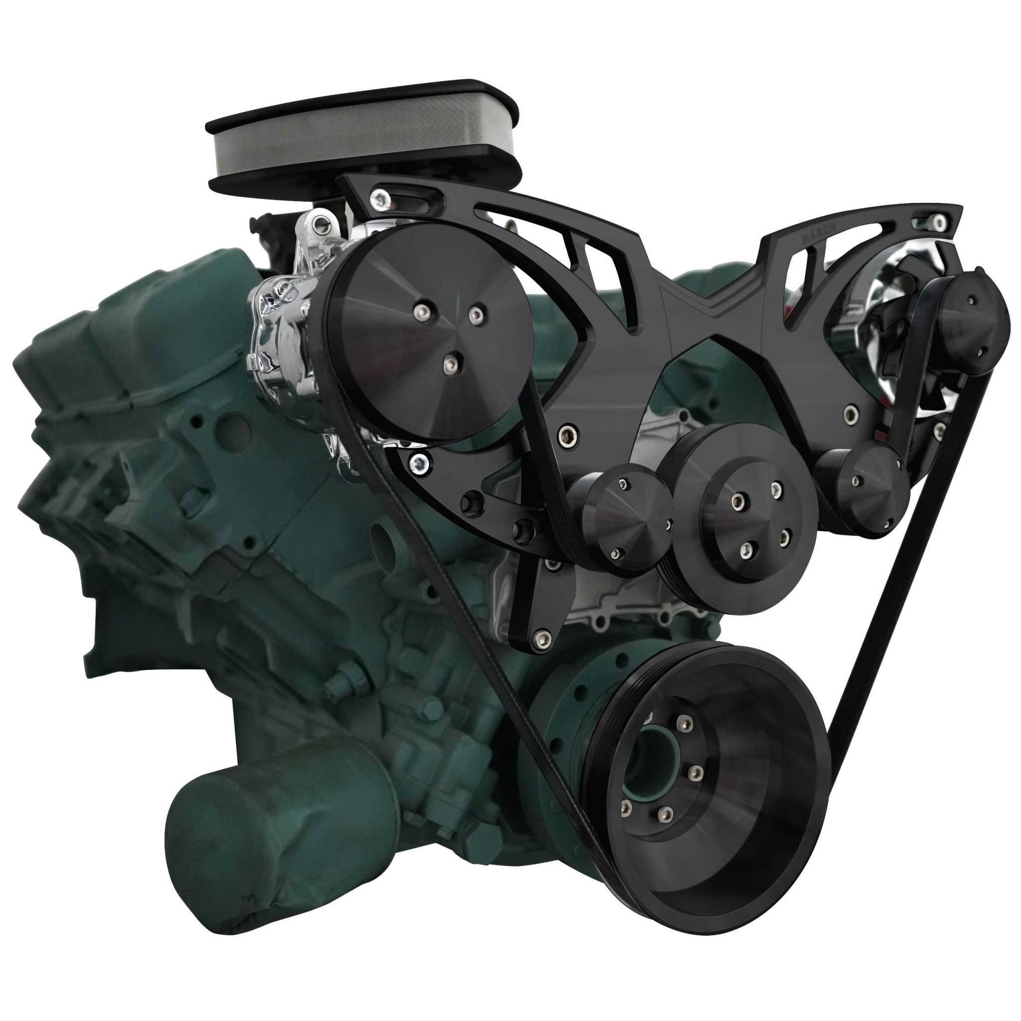 Big Block Buick Style Track Serpentine Kit – AC & ALT – Black