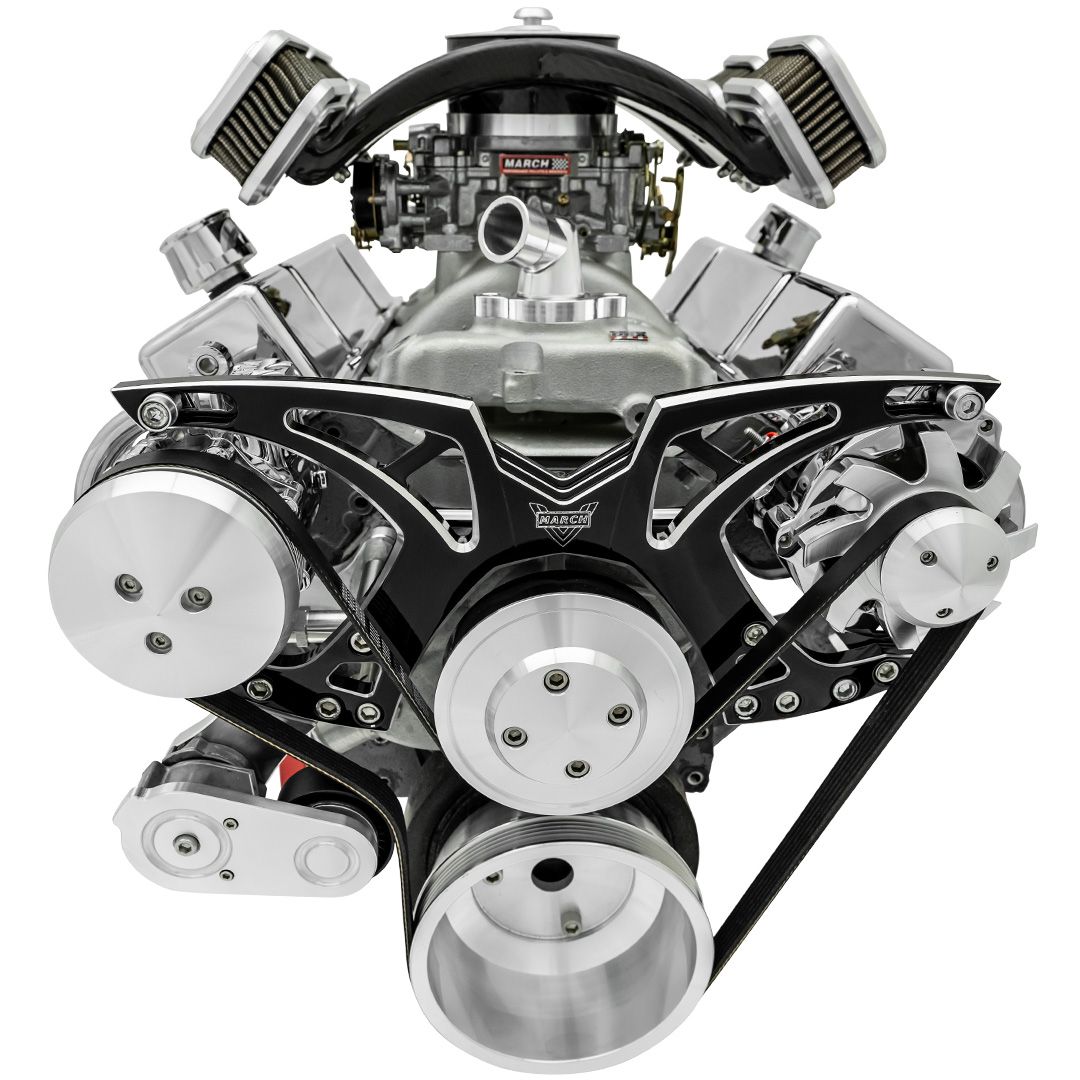 Big Block Chevy Style Track Serpentine System – AC & ALT – Black Onyx