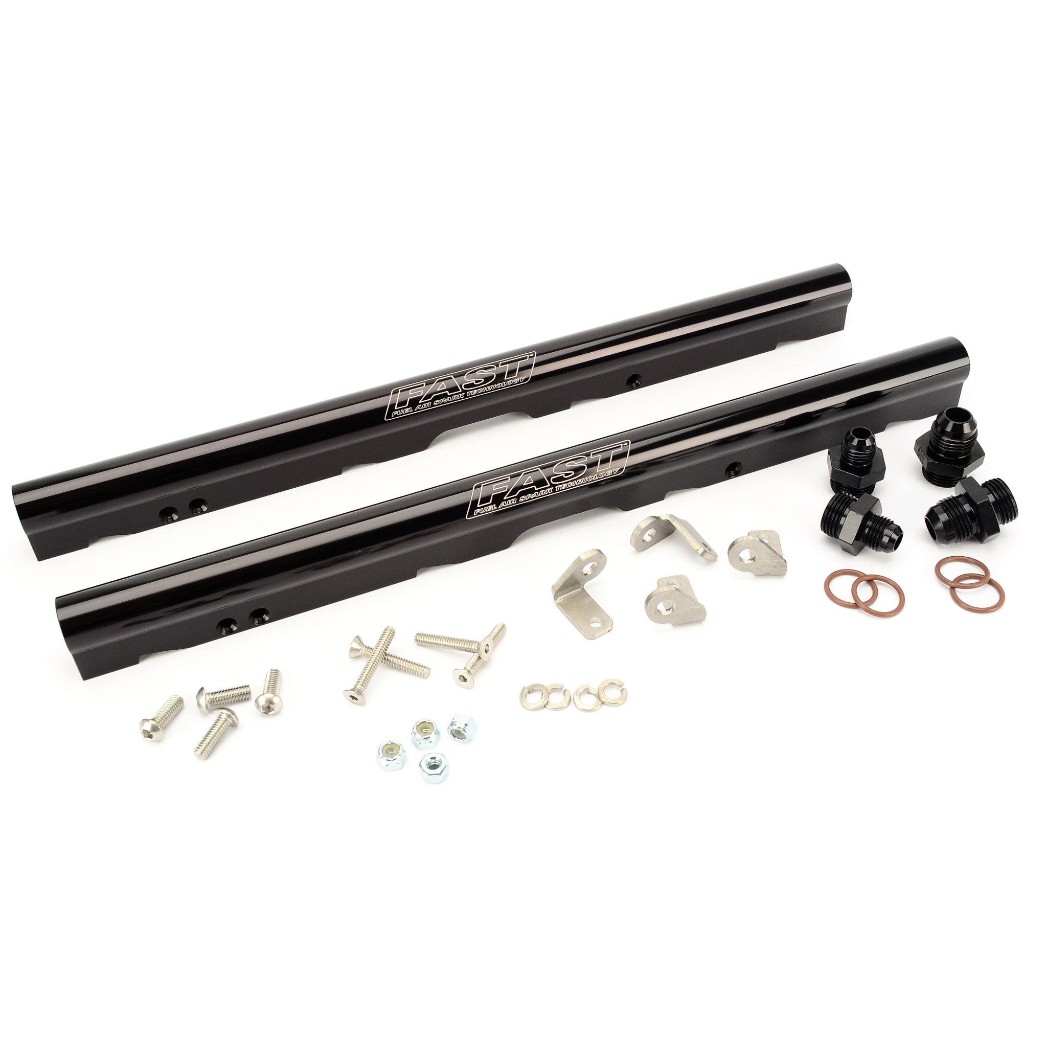FAST LSX/LSXR/LSXRT Fuel Rails feature a larger internal diameter that dampens the pulses and provides increased fuel volume, ensuring that your injectors never run dry. In addition, they yield better fuel distribution and ultimately greater horsepower. Featuring high strength billet, lightweight, red or black (specific applications) anodized aluminum construction (does not include Part 146020-KIT or Part 146021-KIT), FAST fuel rails deliver performance in addition to a show car quality appearance.