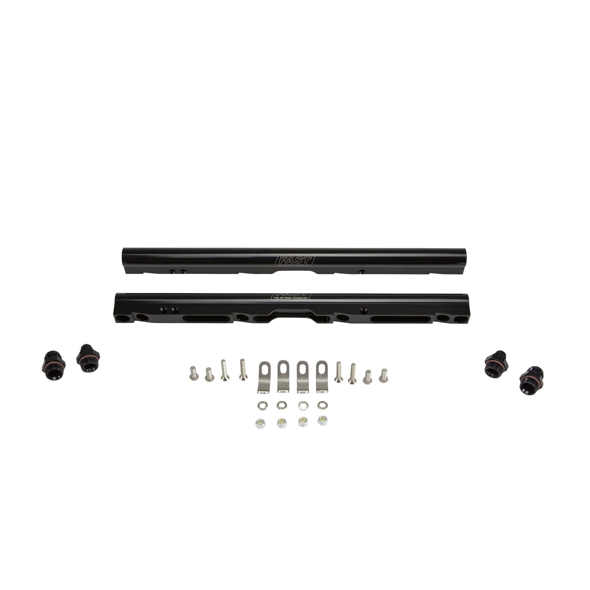 The 146035B-KIT FAST Black Billet Fuel Rail Kit is designed to for optimal flow in GM LS engines with the LS1/LS6 or FAST LSX 92mm intake manifolds. Includes brackets, AN fittings that fit LS1 profile injectors.