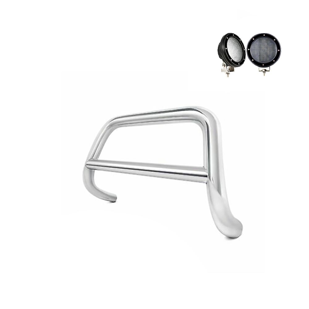 Black Horse Off Road A Bar Kit Stainless Steel Stainless Steel No Skid Plate Pair of 5.3" Dia. LED Flood Lights w/ Black Trim Rings Wiring Harness and Switch It May Interfere with Vehicles equipped with Emergency Braking Systems, Adaptive Cruise Control and Parking Sensors