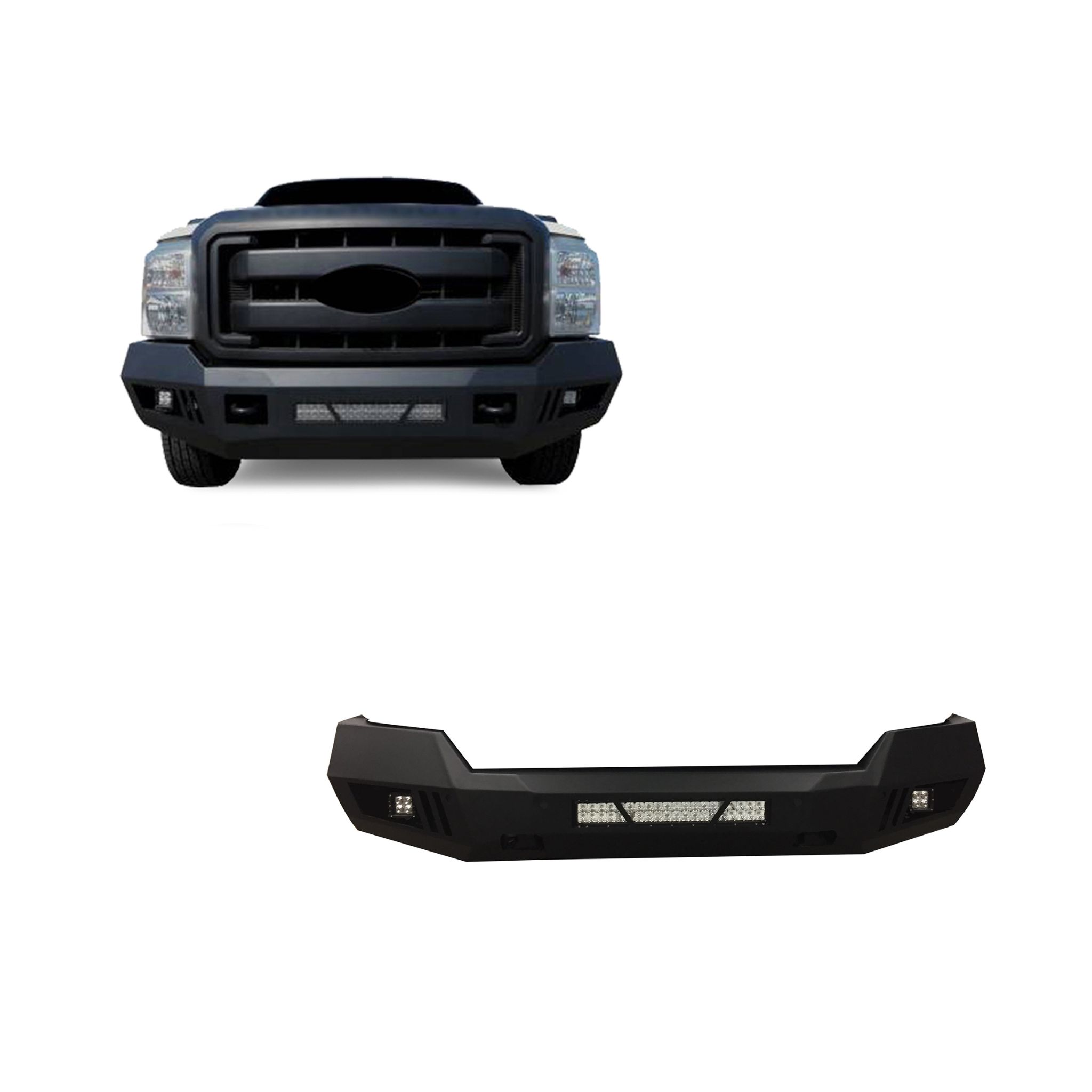 Black Horse Off Road Armour Heavy Duty Front Bumper Kit Matte Black Steel Armour I Front Bumper Includes 1 20in LED Light Bar, 2 sets of 4in cube lights Incl. Sensors Relocation Kit Material Thickness Is 3mm , Bracket Thickness is 6mm