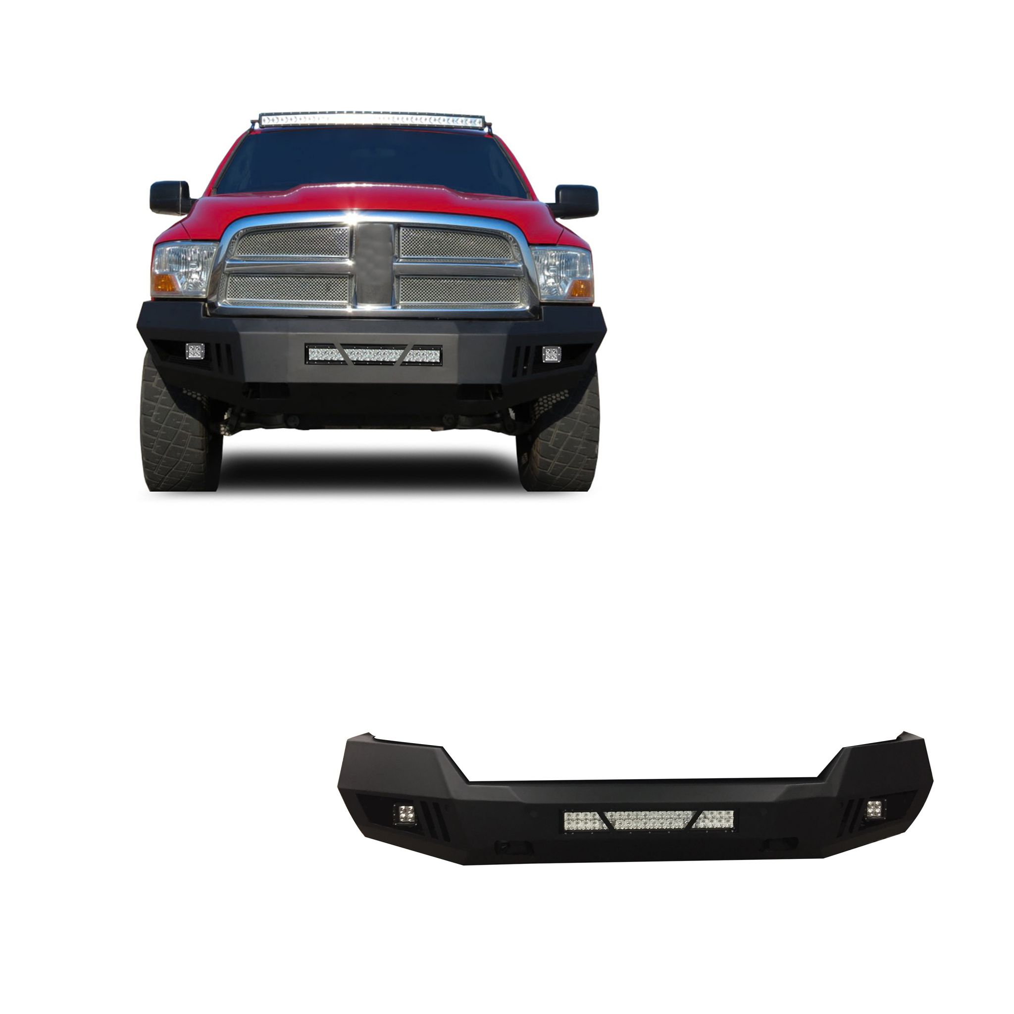 Black Horse Off Road Armour Heavy Duty Front Bumper Kit Matte Black Steel Armour I Front Bumper Includes 1 20in LED Light Bar, 2 sets of 4in cube lights Incl. Sensors Relocation Kit Material Thickness Is 3mm , Bracket Thickness is 6mm
