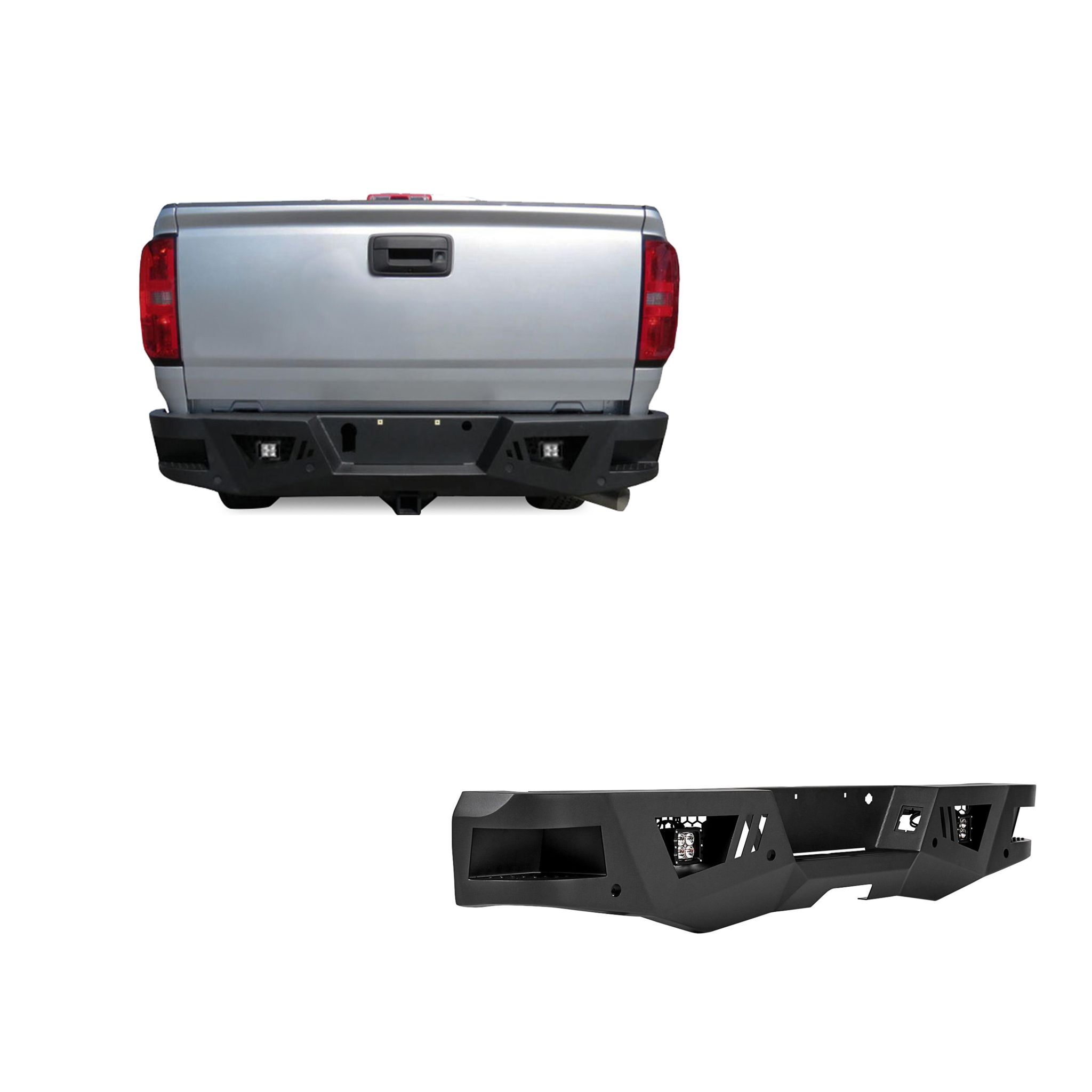 Black Horse Off Road Armour Heavy Duty Rear Bumper Kit Matte Black Steel Includes 1 set of 4in cube lights Excludes ZR2 model Material Thickness Is 3mm , Bracket Thickness is 6mm