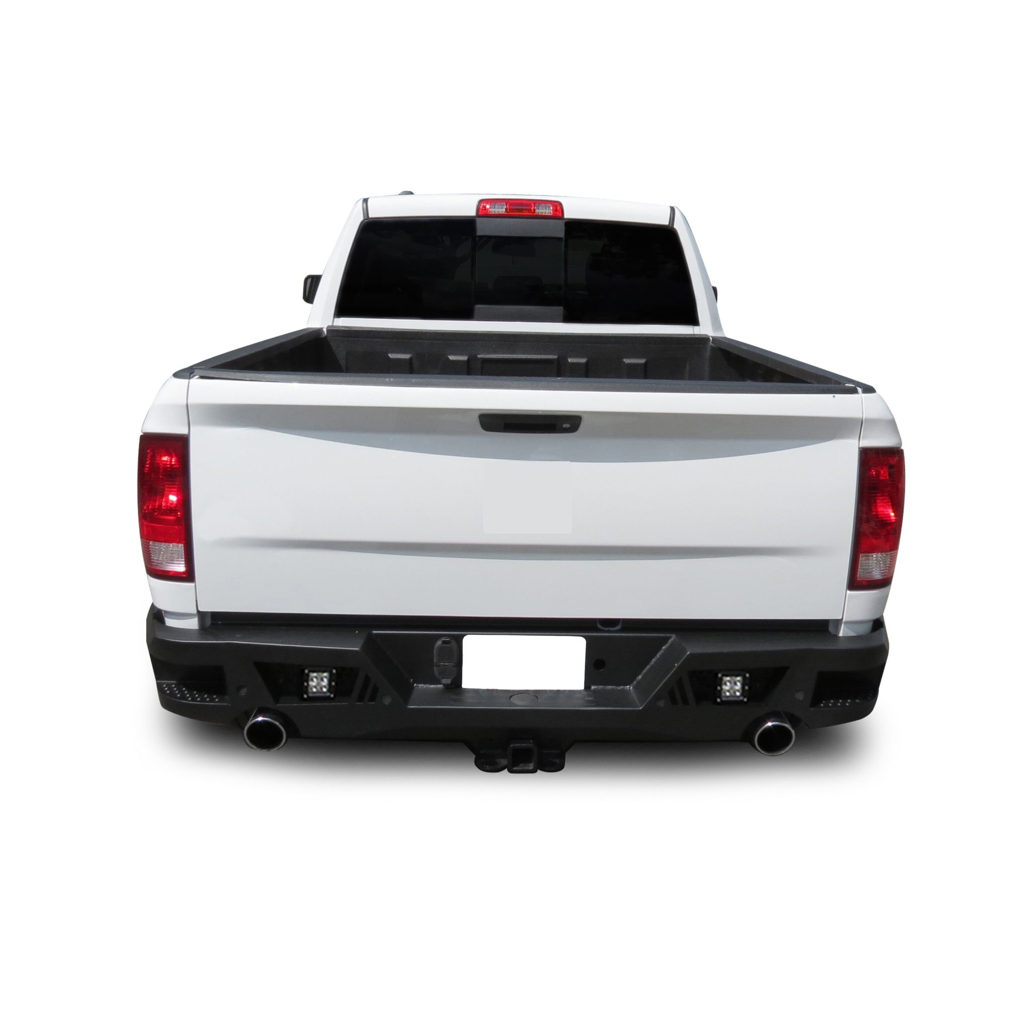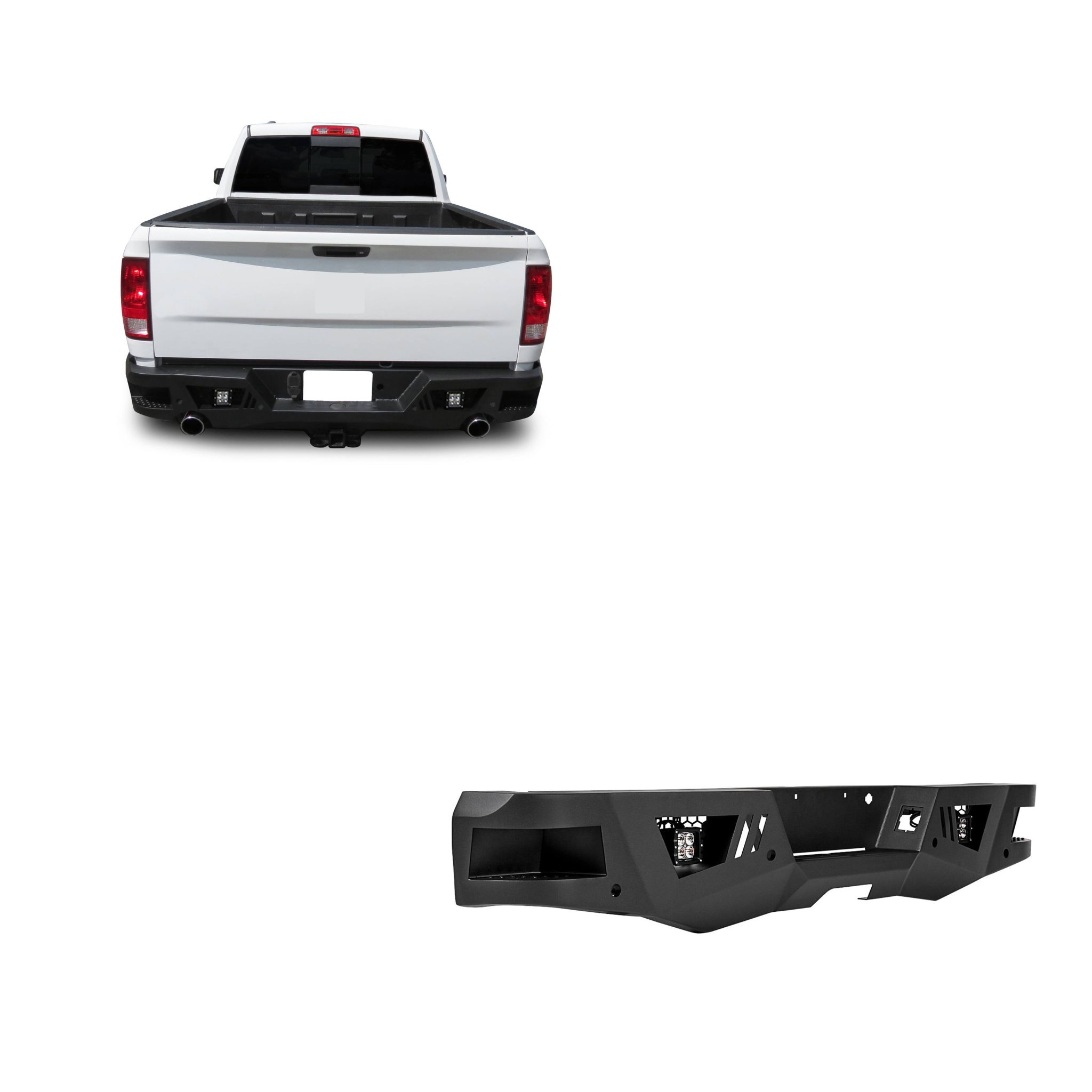 Black Horse Off Road Armour Heavy Duty Rear Bumper Kit Matte Black Steel Includes 1 set of 4in cube lights Incl. Sensors Relocation Kit Material Thickness Is 3mm , Bracket Thickness is 6mm