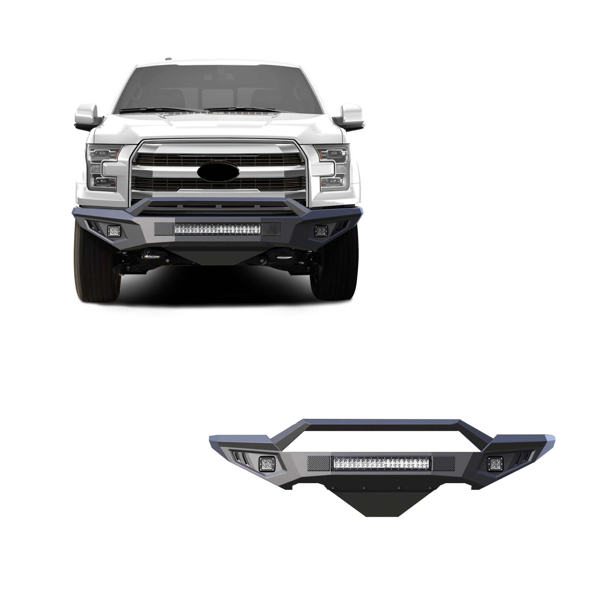 Black Horse Off Road Armour II Heavy Duty Front Bumper Kit Matte Black Steel Armour II Front Bumper Includes 1 20in LED Light Bar, 2 sets of 4in cube lights Incl. EcoBoost engine model