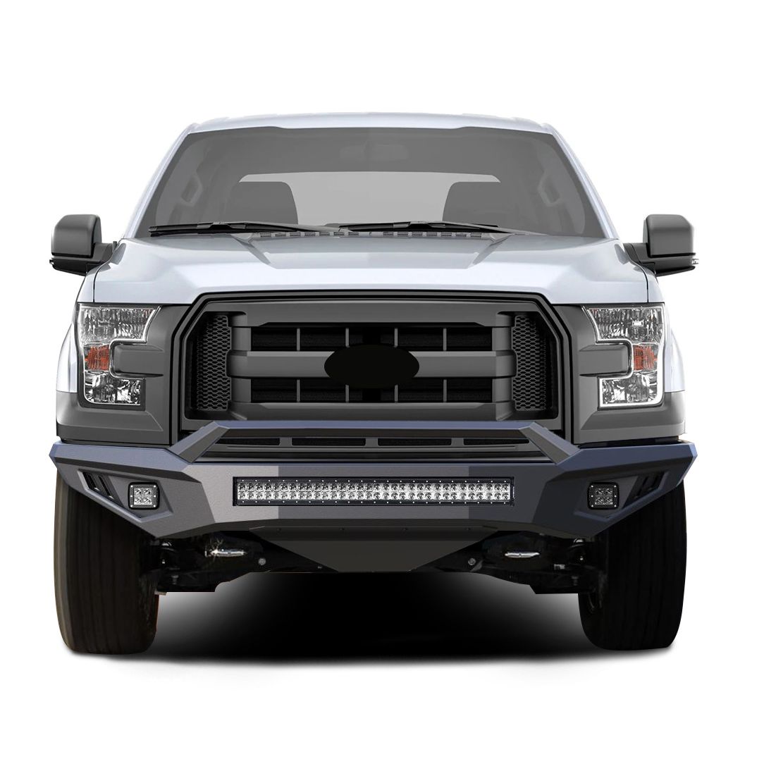 Black Horse Off Road Armour II Heavy Duty Front Bumper Kit Matte Black Steel Armour II Front Bumper Includes 1 30in LED Light Bar, 2 sets of 4in cube lights Incl. EcoBoost engine model