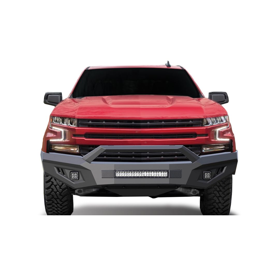 Matte Black Steel Armour II Front Bumper Includes 1 20in LED Light Bar, 2 sets of 4in cube lights