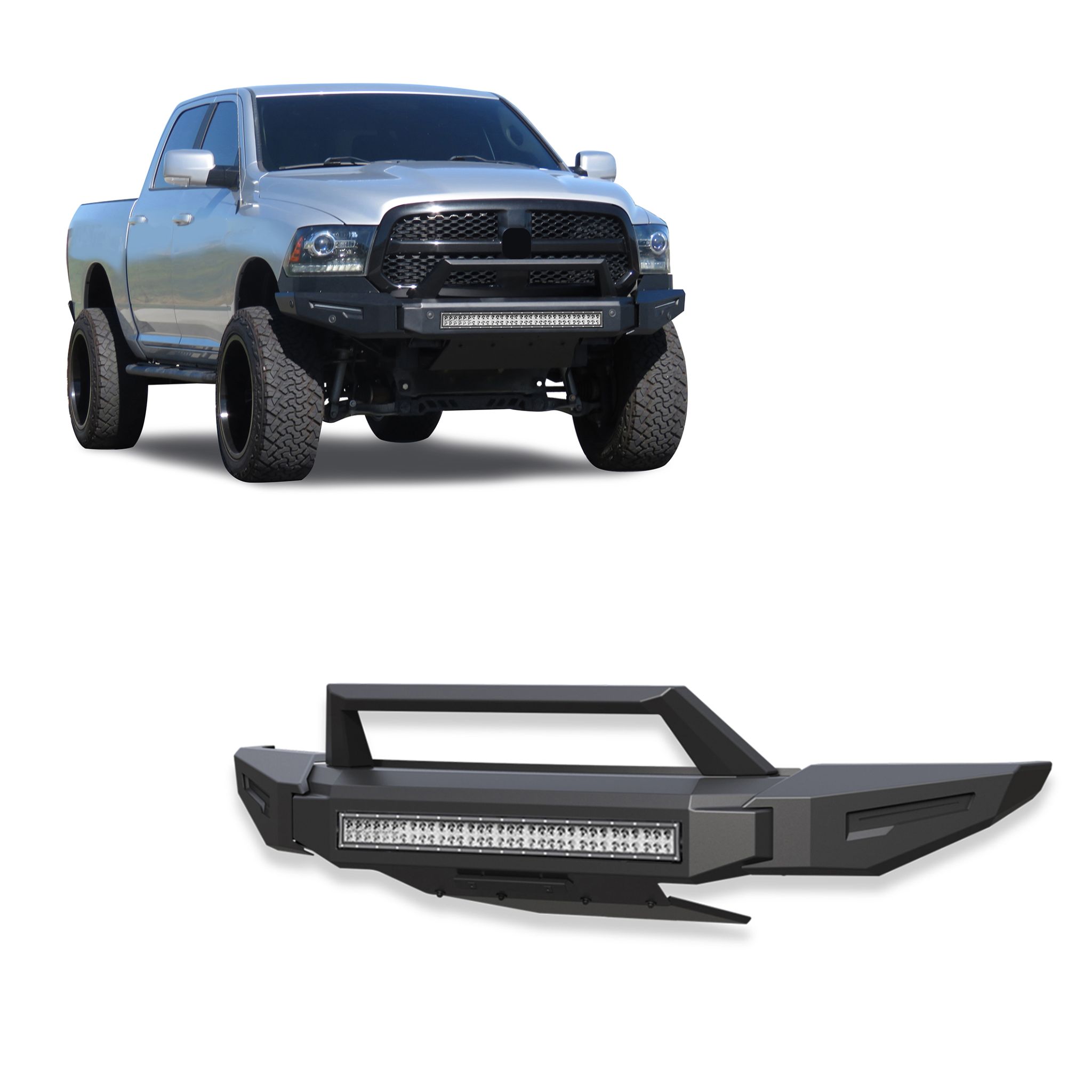 Black Horse Off Road Armour II Heavy Duty Modular Front Bumper Kit Matte Black Steel Modular Full Set (Bumper, Bull Nose, & Skid Plate)& Includes 1 30in LED Light Bar Excl. Rebel and warlock/ Incl. 19-24 Classic