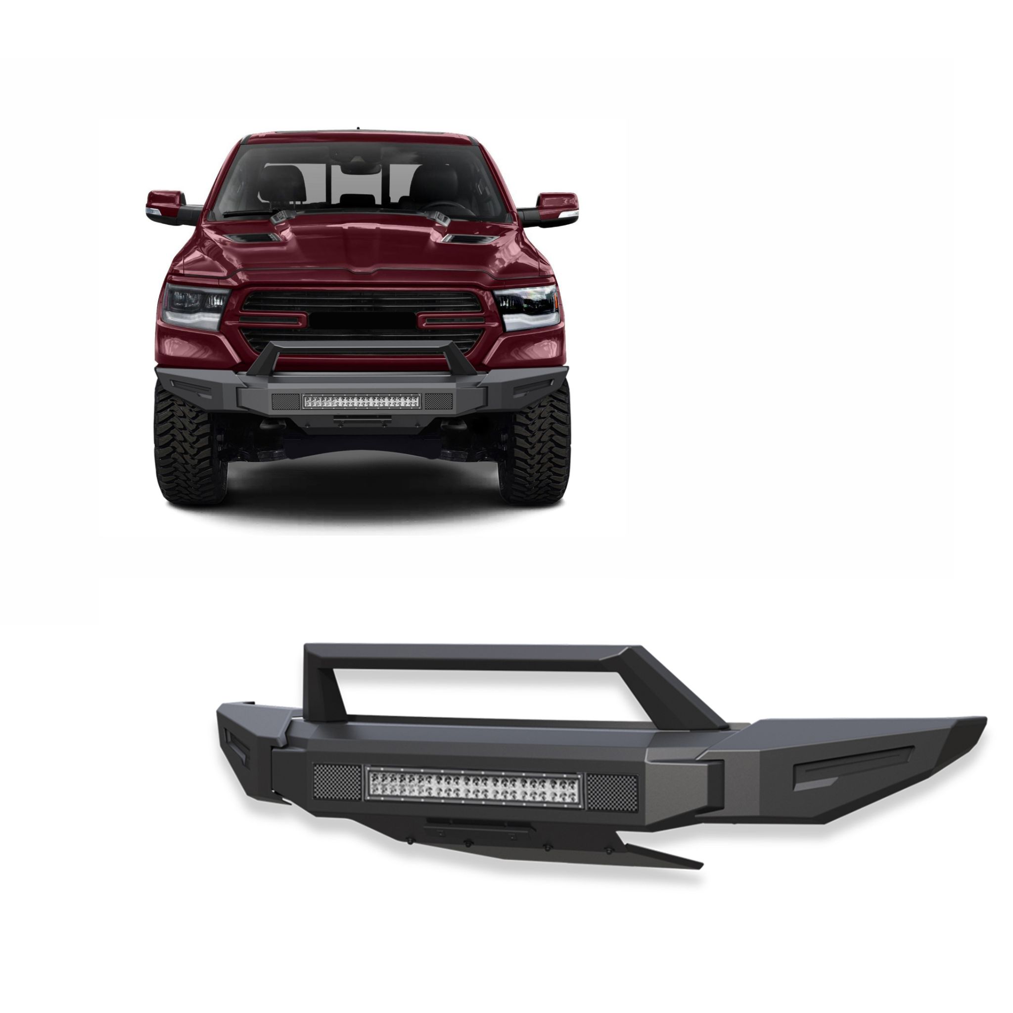Black Horse Off Road Armour II Heavy Duty Modular Front Bumper Kit Matte Black Steel Modular Includes 1 20in LED Light Bar, 2 sets of 4in cube lights With sensor Relocation Excl. Rebel & TRX Trim, 19-23 Ram 1500 Classic and 20-22 Ram 1500 Diesel Models