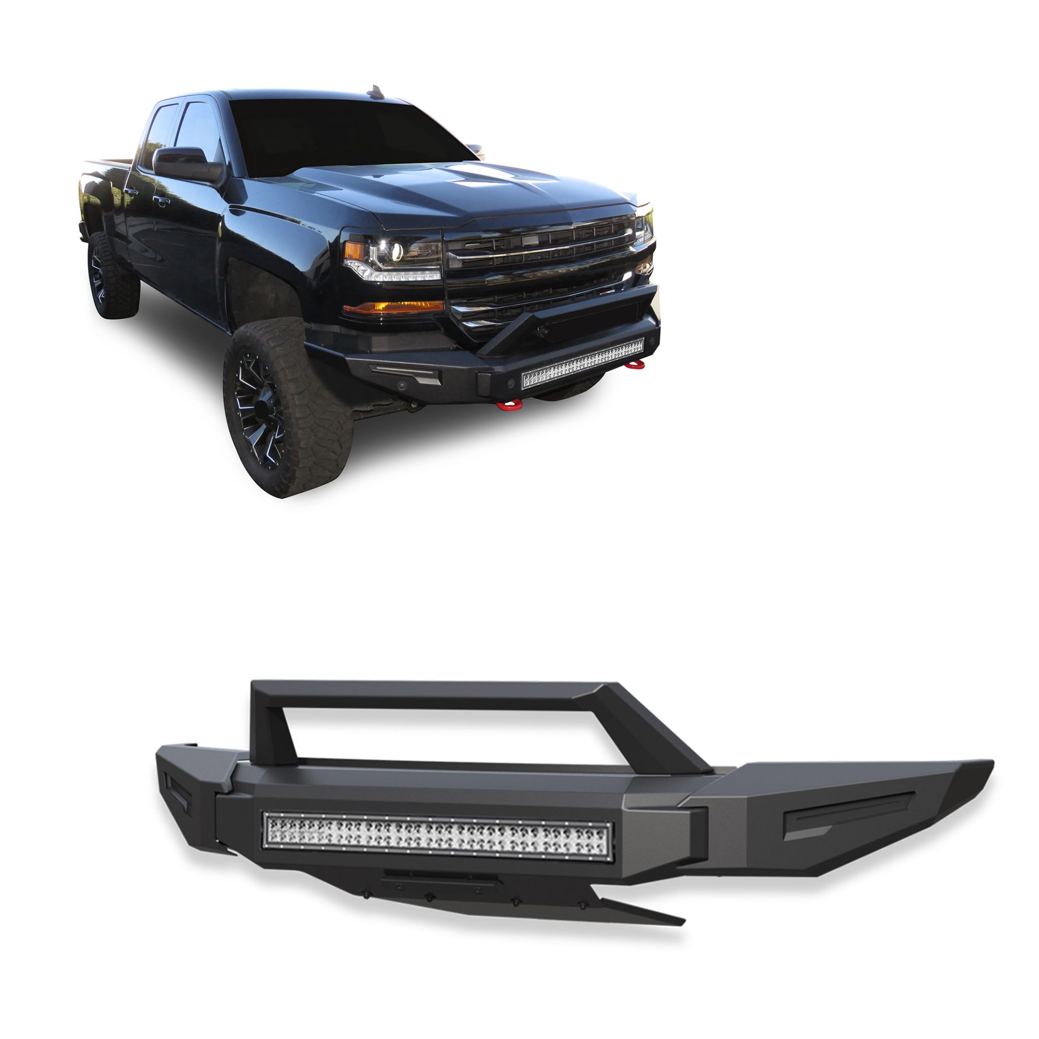 Black Horse Off Road Armour II Heavy Duty Modular Front Bumper Kit Matte Black Steel Modular Full Set (Bumper, Bull Nose, & Skid Plate)& Includes 1 30in LED Light Bar Incl. 2019 Silverado 1500 LD