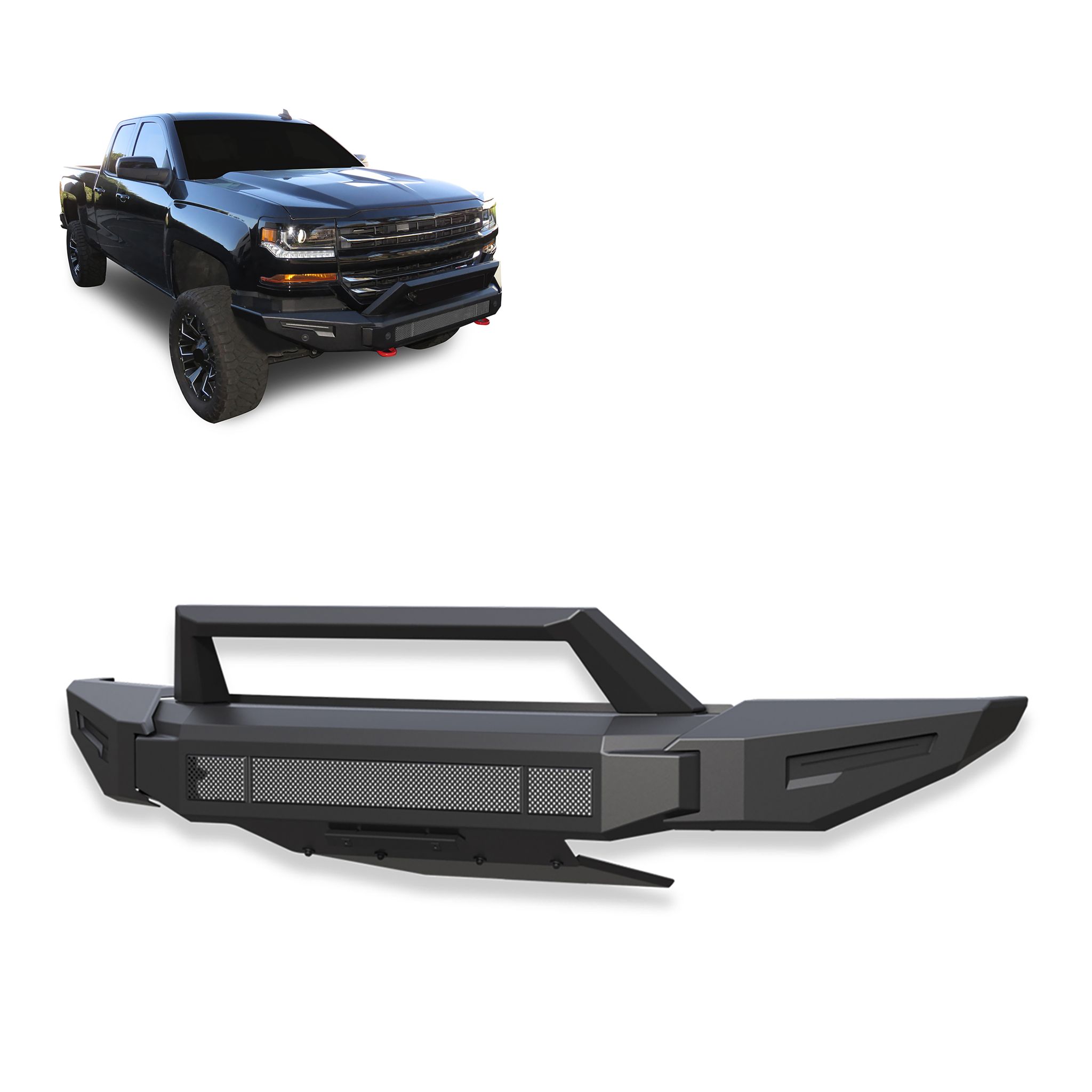 Black Horse Off Road Armour II Heavy Duty Modular Front Bumper Matte Black Steel Modular Full Set (Bumper, Bull Nose, & Skid Plate) Incl. 2019 Silverado 1500 LD