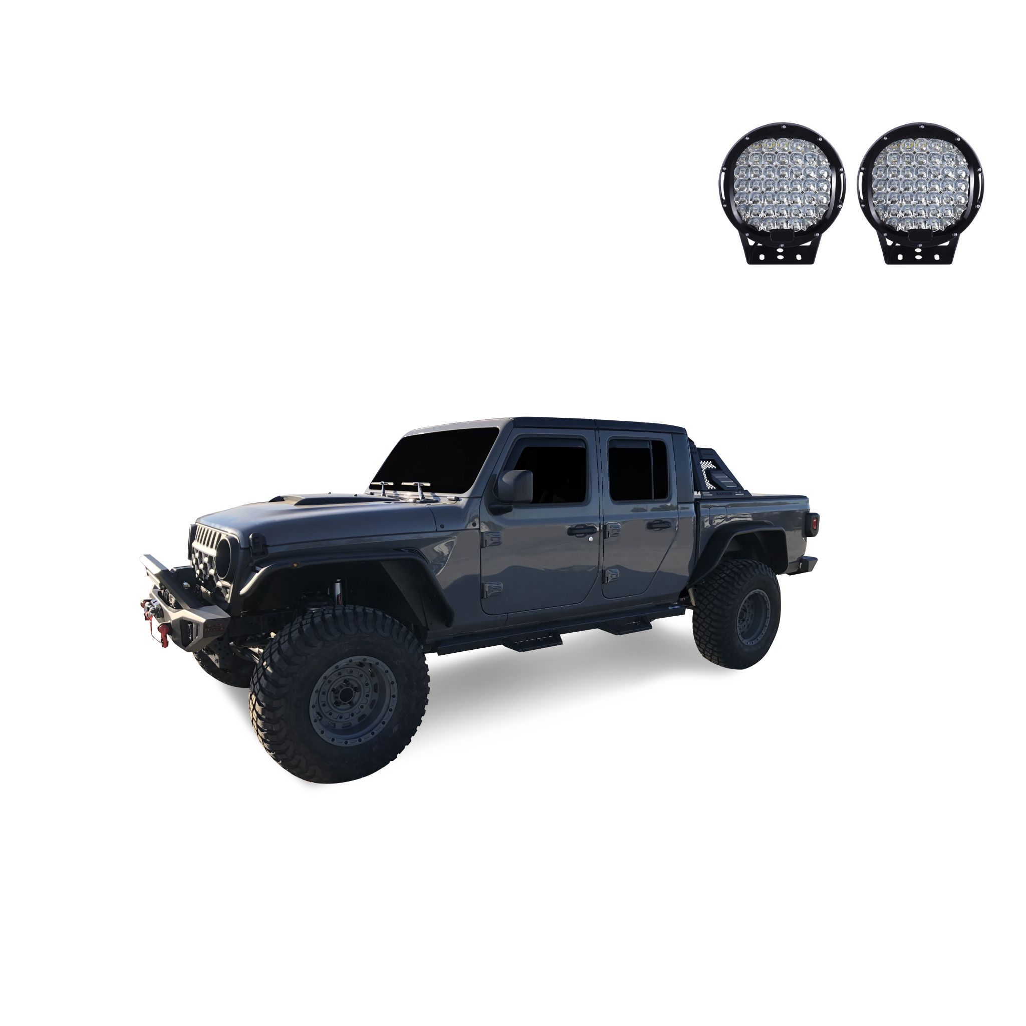 Black Horse Off Road Armour II Roll Bar Kit Black Steel W/ Set of 9" Black Round LED Light Patented
