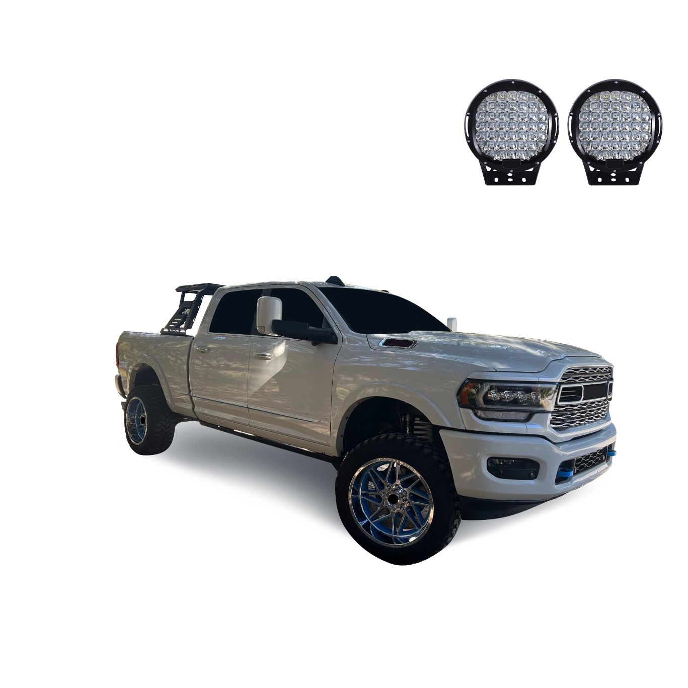 Black Horse Off Road Armour II Roll Bar W/Basket Kit Black Steel 2nd Box: 57.48 4.72 19.68 inch W/ Set of 9" Black Round LED Light