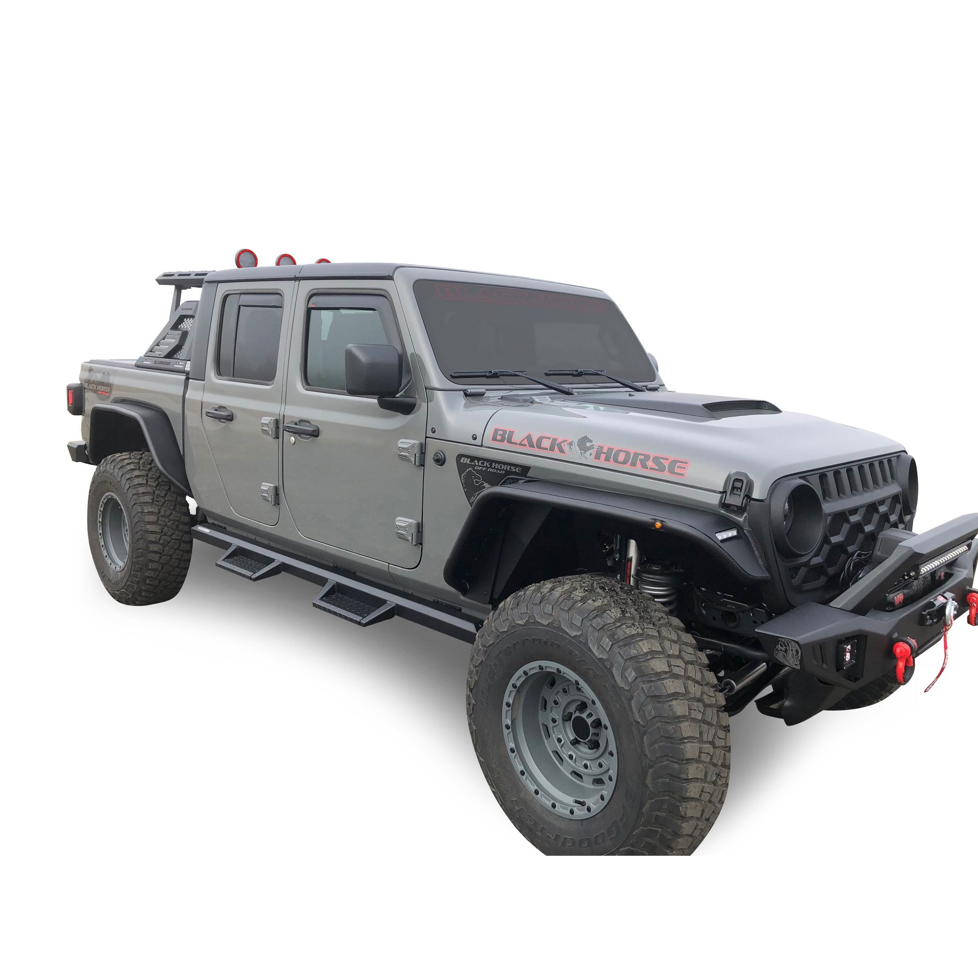 Black Horse Off Road Armour II Roll Bar W/Basket Kit Black Steel 2 sets of 5.3" Dia. Black LED Flood Lights w/ Harness and Switch & 2nd Box: 51.57 4.72 19.68 inch
