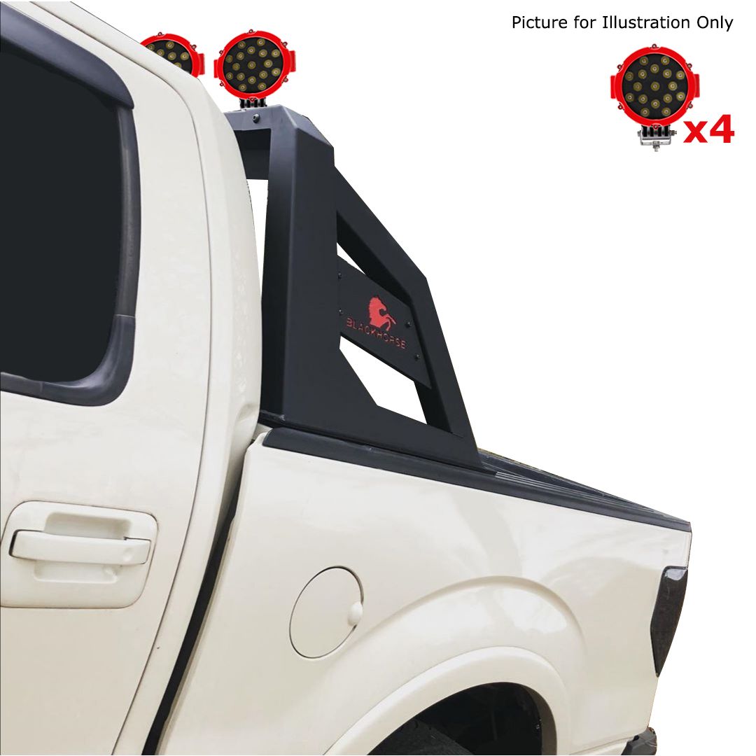 Black Horse Off Road Armour Roll Bar Kit Matte Black Steel Incl. 2 pairs of 7.0"Dia. LED Lights w/Red Trim Rings w/ Wiring Harness and Switch