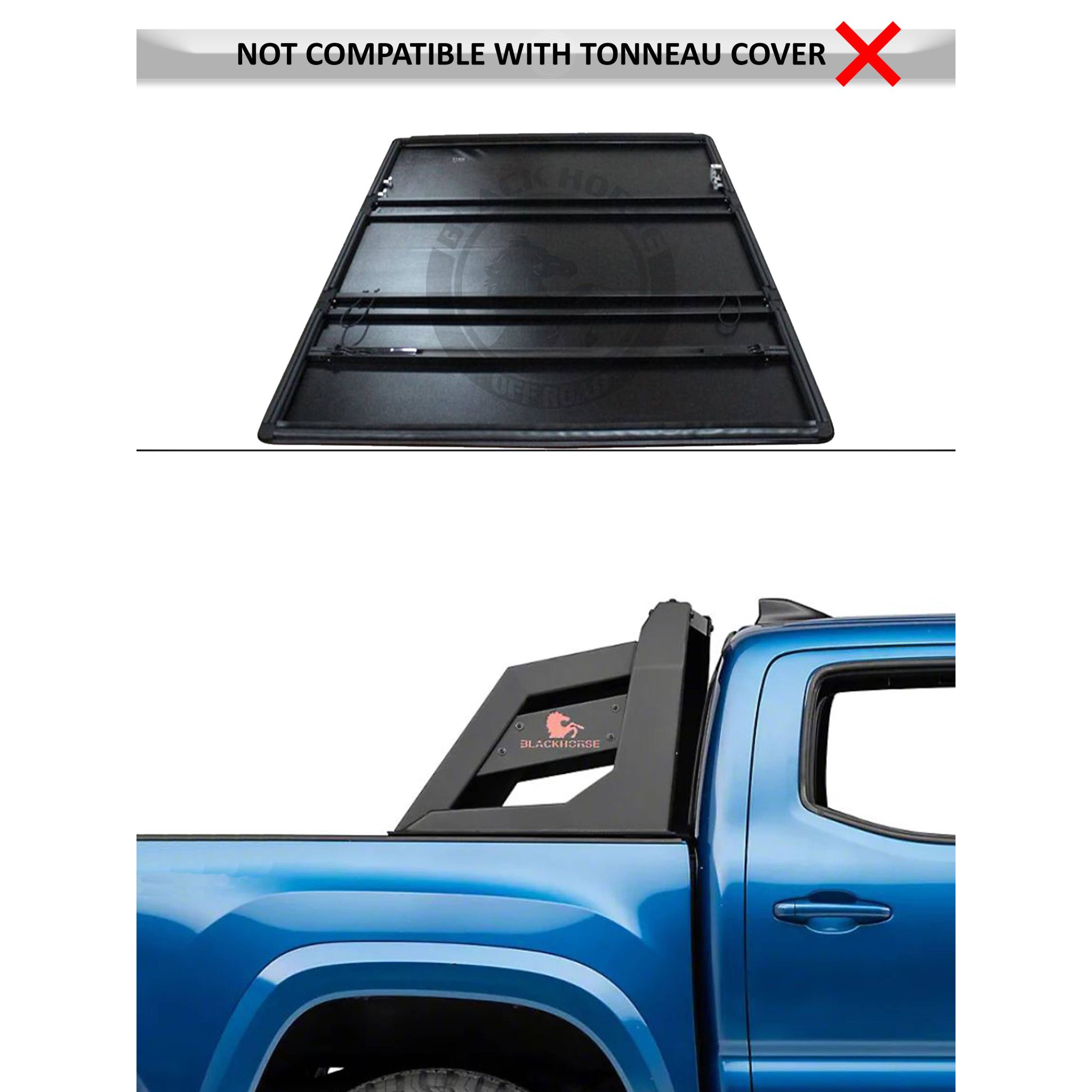 Black Horse Off Road Armour Roll Bar Kit Matte Black Steel 2 sets of 5.3" Dia. Black LED Flood Lights w/ Harness and Switch