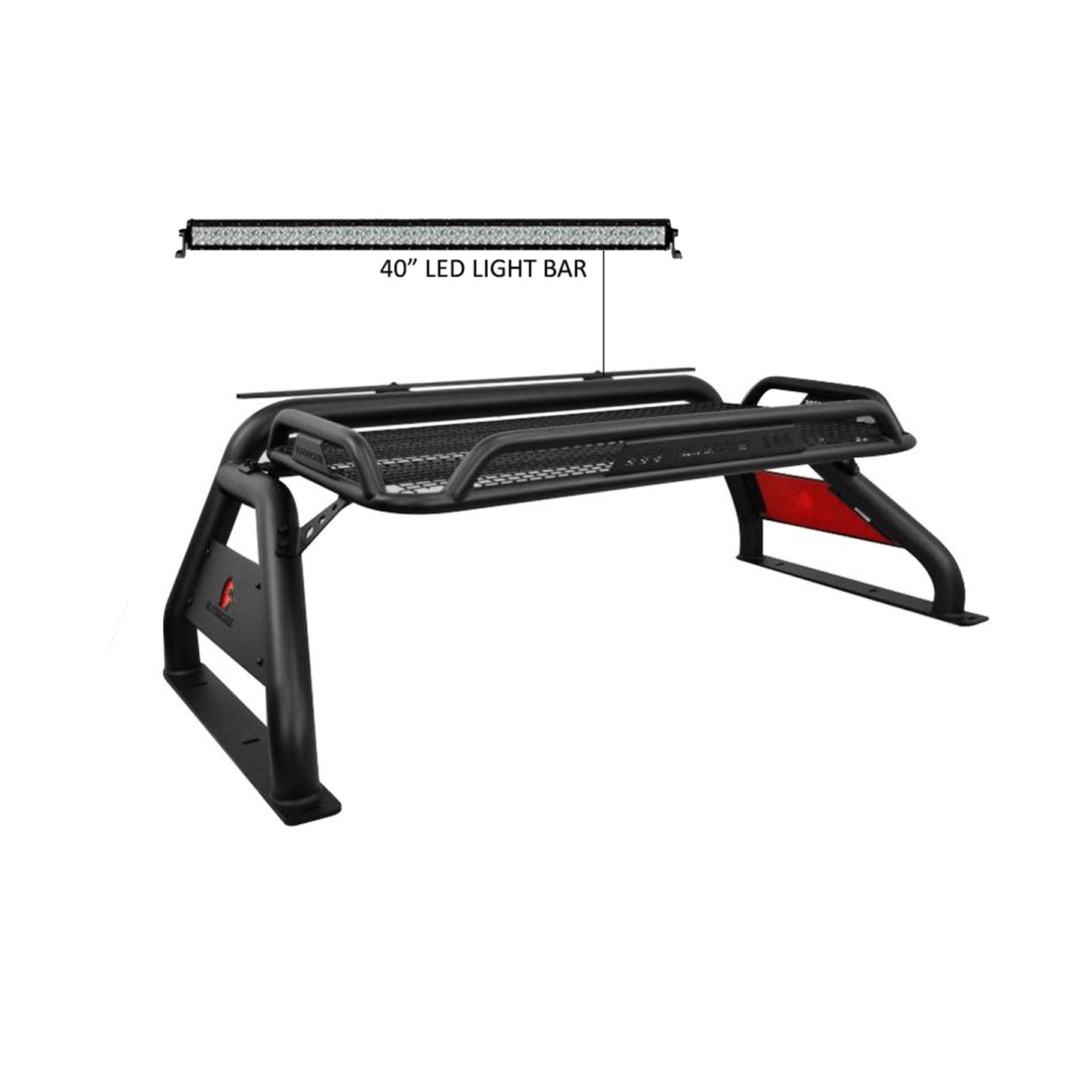 Black Horse Off Road Atlas Roll Bar Kit Black Steel W/40" LED light Bar WITH ORIGINAL CARGO BASKET & FLAT BASE WITH LED BRAKE LIGHT