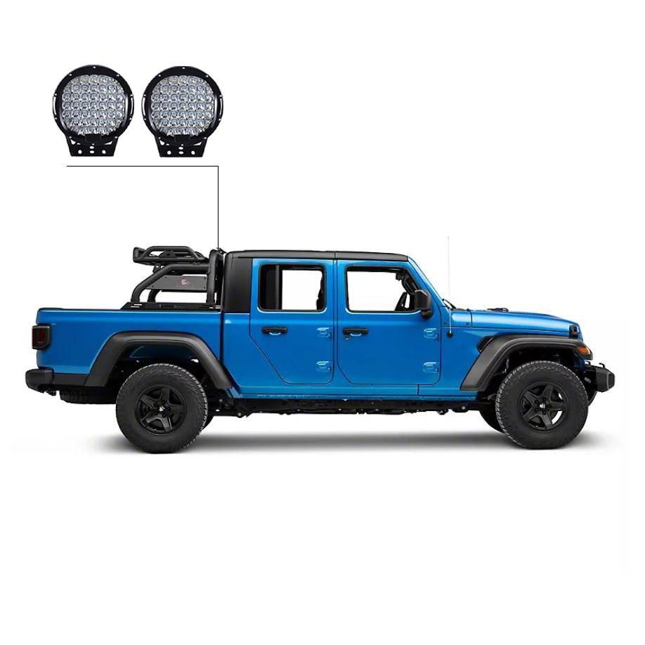 Black Horse Off Road Atlas Roll Bar Kit Black Steel Box 2 contains: 53lbs- 57x32x8 W/ Set of 9" Black Round LED Light
