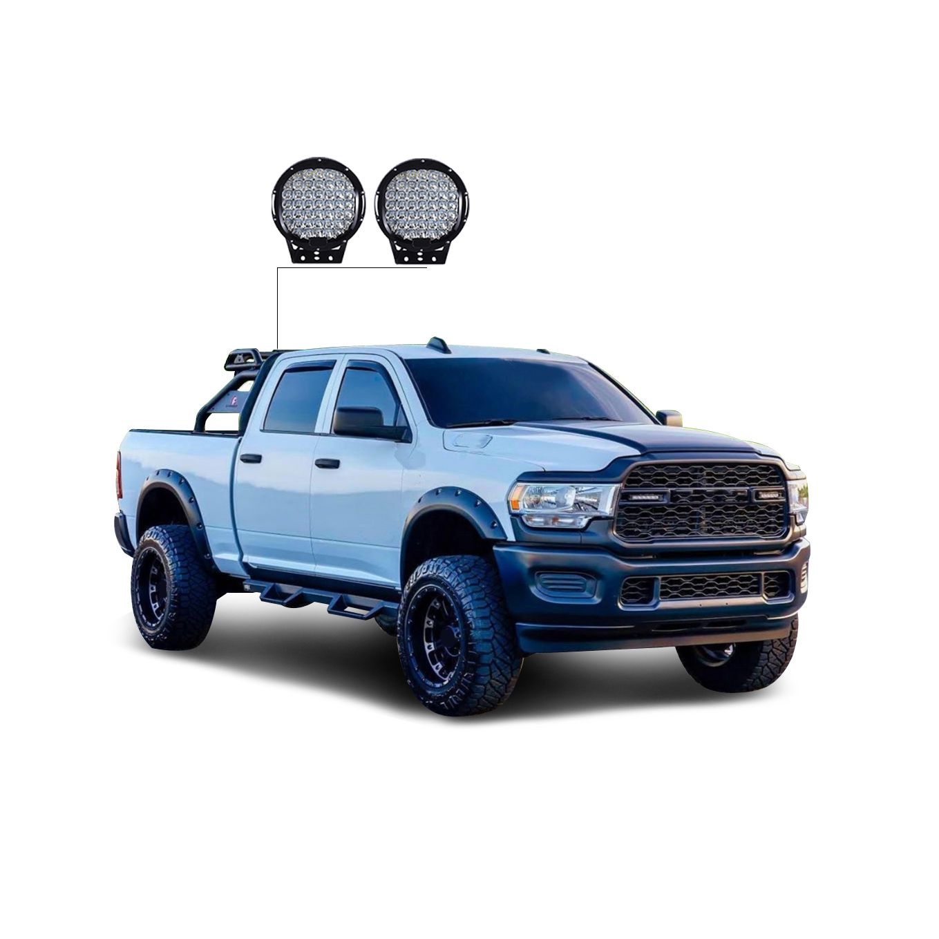Black Horse Off Road Atlas Roll Bar Kit Black Steel W/ Set of 9" Black Round LED Light Needs Slight modification for Trucks equipped with Factory Rail System