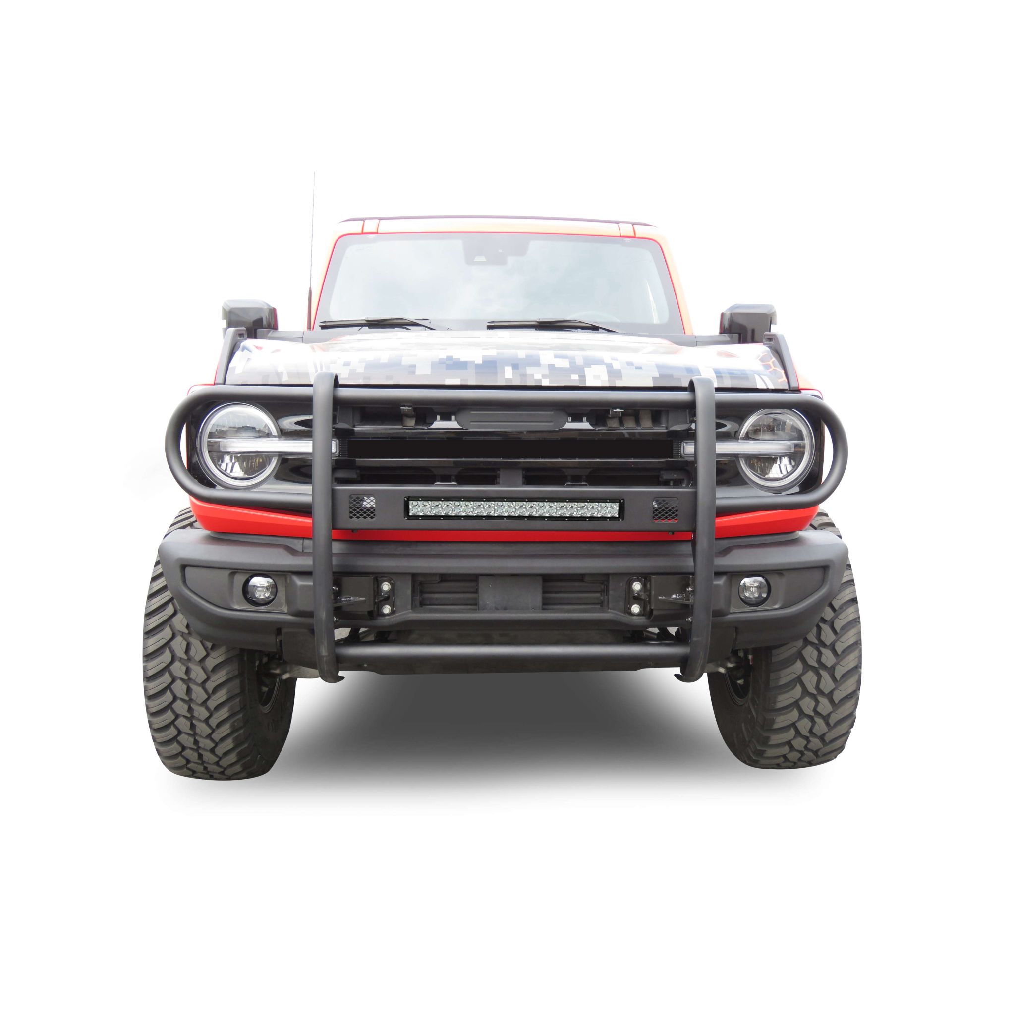 Black Horse Off Road Beacon Grille Guard Black Steel Modular W/ 20" LED Light Full Size