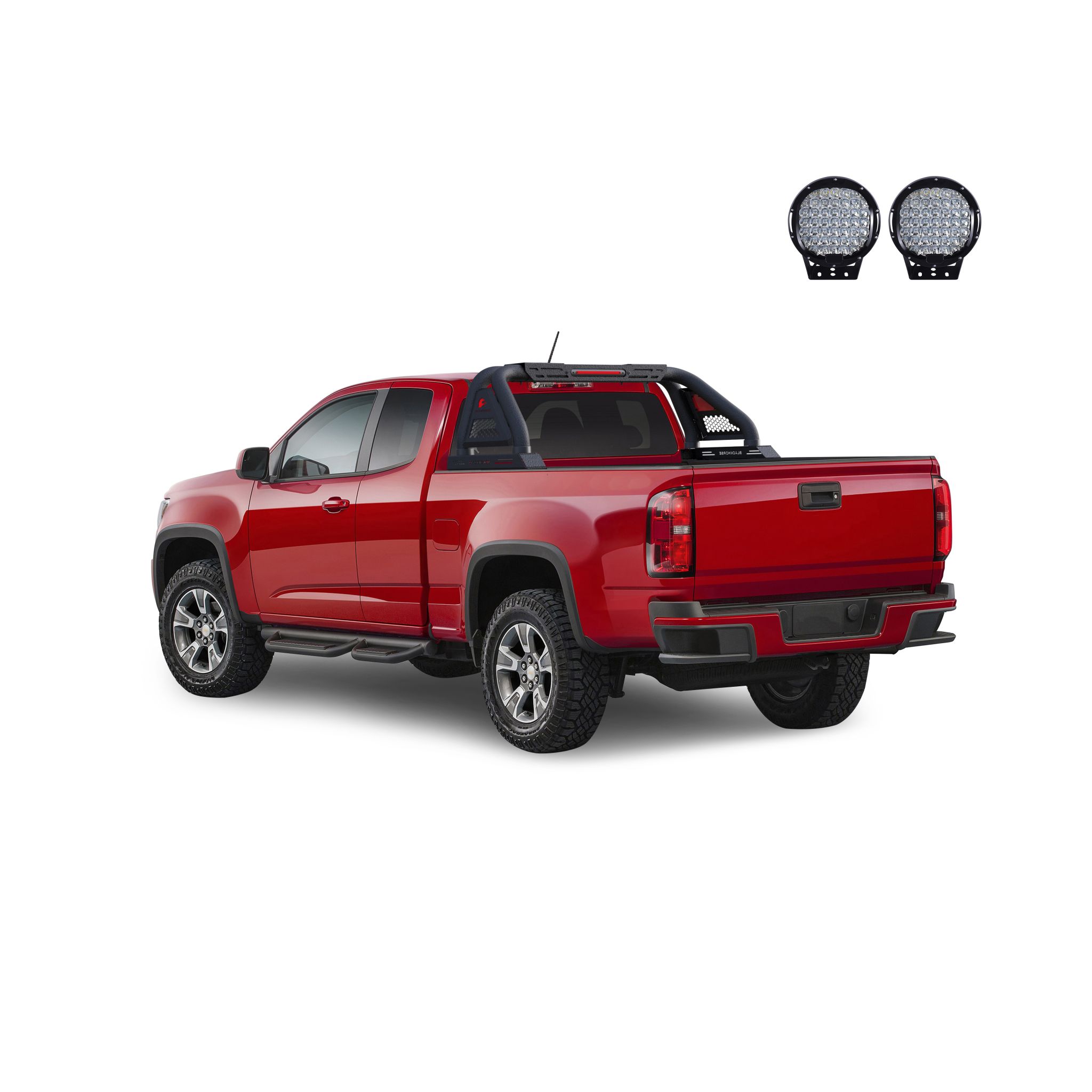 Black Horse Off Road Classic Pro Roll Bar Kit Textured Black Steel Modular Box 2 Contains: 26lbs, 26x12x6 W/ Set of 9" Black Round LED Light Compatible with Tonneau Covers