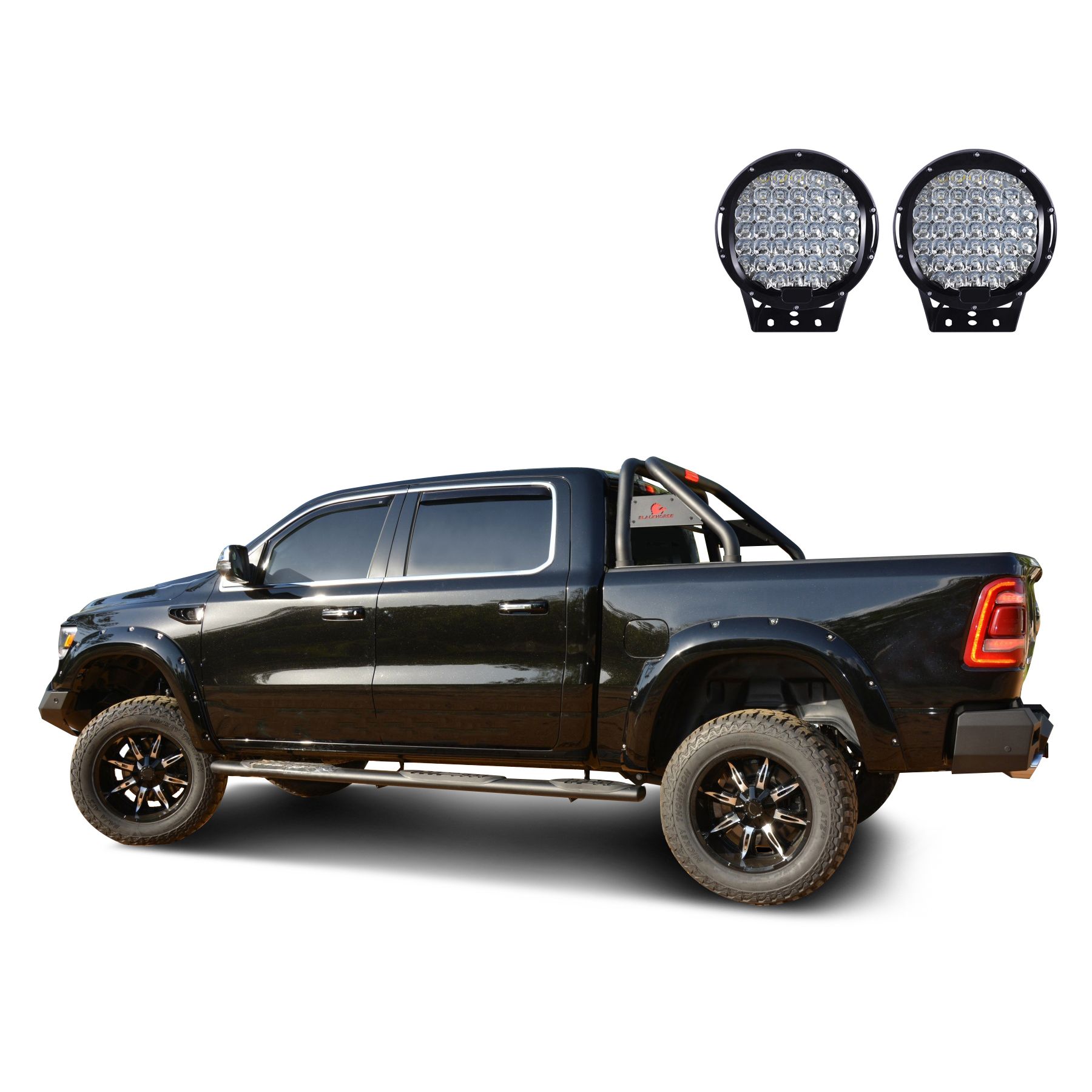 Black Horse Off Road Classic Roll Bar Kit Black Steel W/ Set of 9" Black Round LED Light Compatible with tonneau cover Excludes Classic model