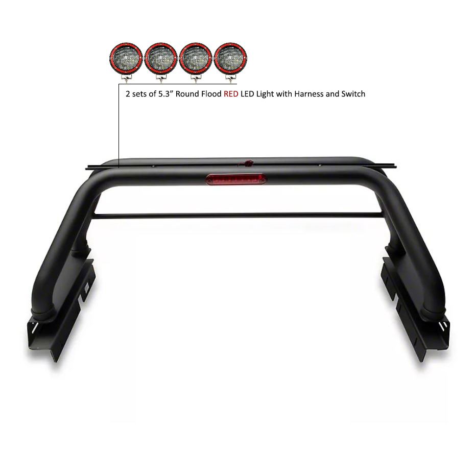 Black Horse Off Road Classic Roll Bar Kit Black Steel 2 sets of 5.3" Dia. Black LED Flood Lights w/ Harness and Switch Raised Base to Accommodate Tonneau Cover
