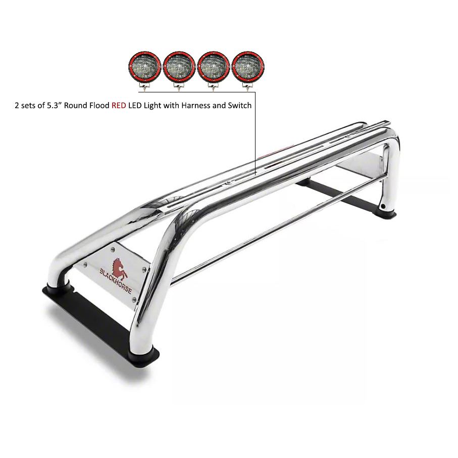 Black Horse Off Road Classic Roll Bar Kit Stainless Steel Stainless Steel 2 sets of 5.3" Dia. Black LED Flood Lights w/ Harness and Switch Not Compatible with Tonneau Cover