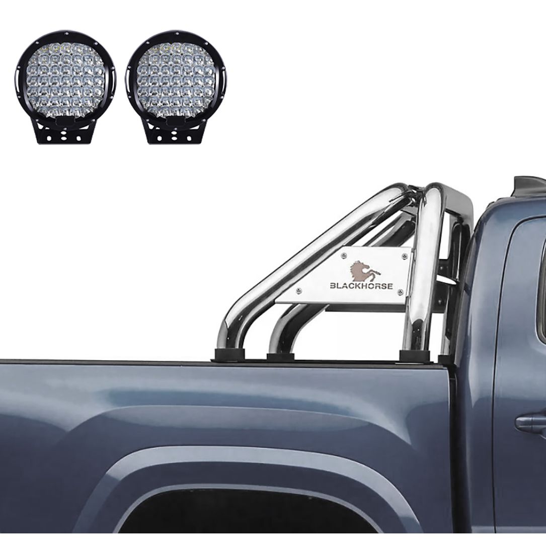 Black Horse Off Road Classic Roll Bar Kit Stainless Steel Stainless Steel W/ Set of 9" Black Round LED Light Not Compatible with Tonneau Cover