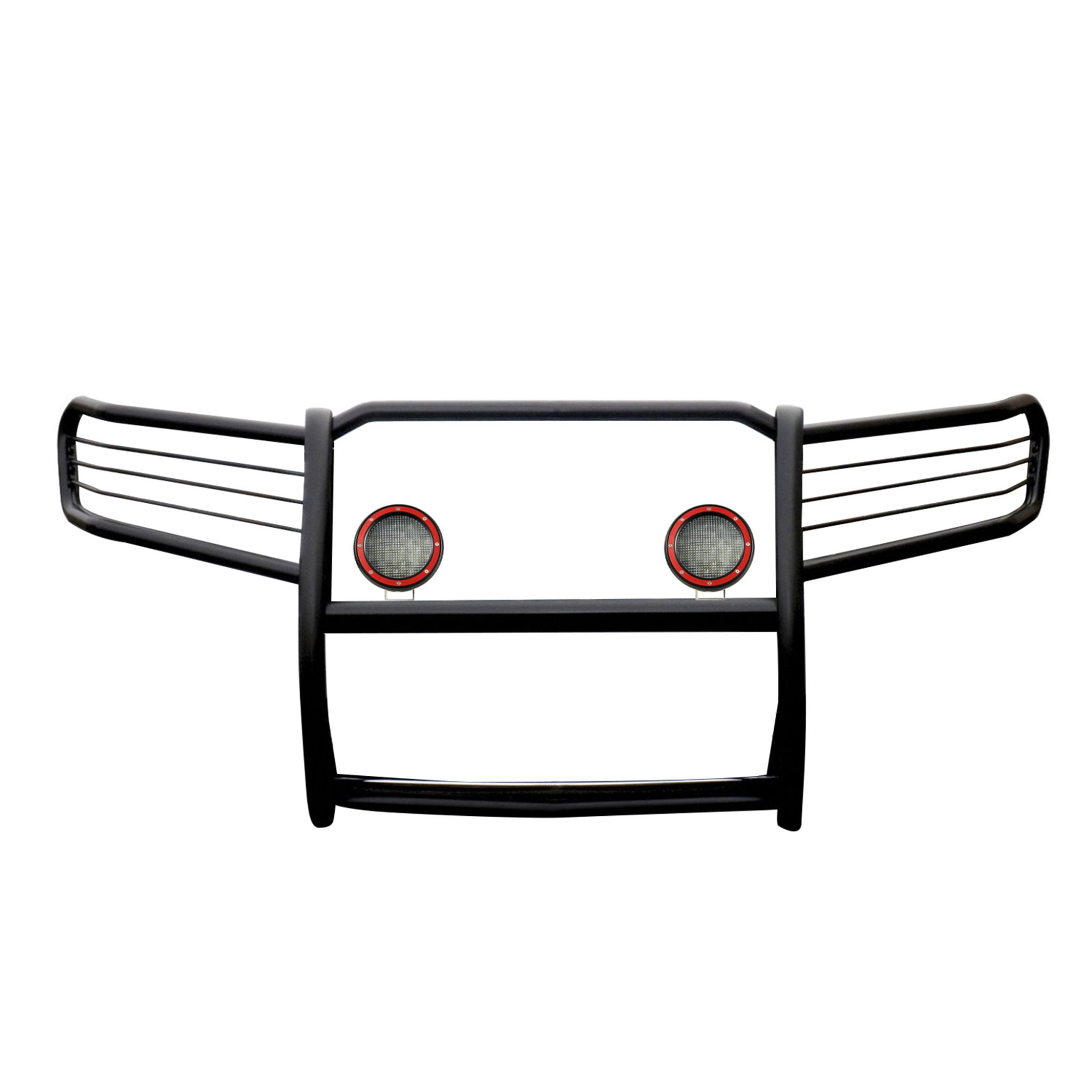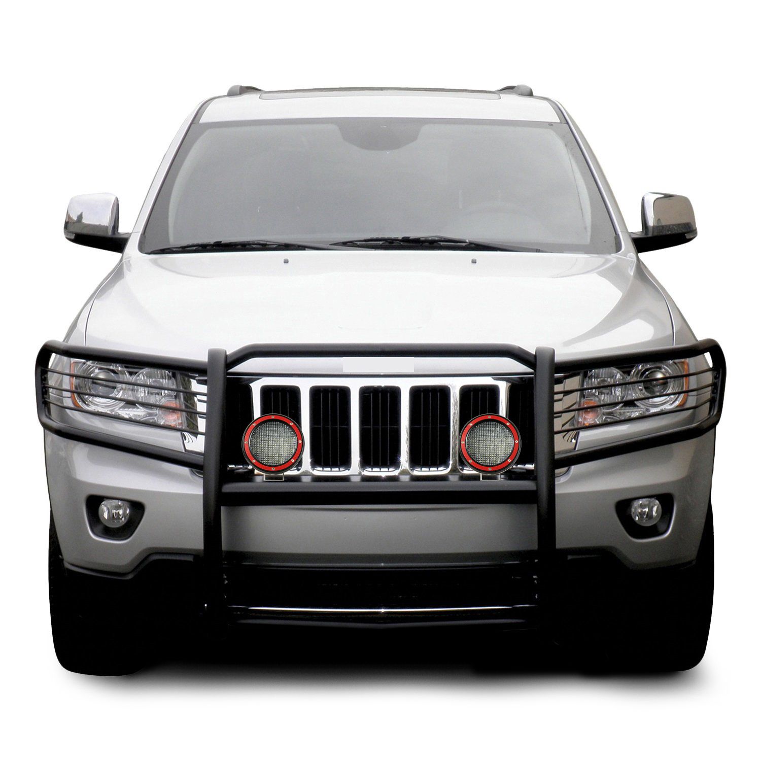 Black Horse Off Road Grille Guard Kit Black Steel Modular Pair of 5.3" Dia. LED Flood Lights w/ Red Trim Rings Wiring Harness and Switch Incl. 22 WK & Excl. Limited X, SRT, Summit, Trackhawk and models with adaptive cruise control Will interfere w/sensors if equipped It May Interfere with Vehicles equipped with Emergency Braking Systems, Adaptive Cruise Control and Parking Sensors