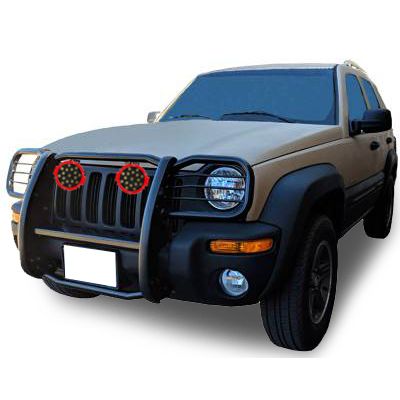 Black Horse Off Road Grille Guard Kit Black Steel Modular Incl. pair of 7.0"Dia. LED Lights w/Red Trim Rings w/ Wiring Harness and Switch