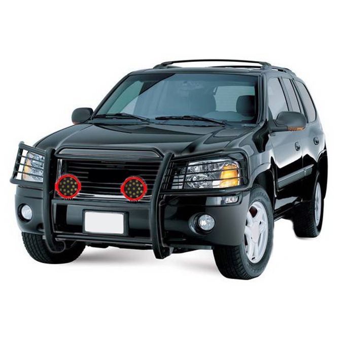 Black Horse Off Road Grille Guard Kit Black Steel Modular Incl. pair of 7.0"Dia. LED Lights w/Red Trim Rings w/ Wiring Harness and Switch Excl. Denali