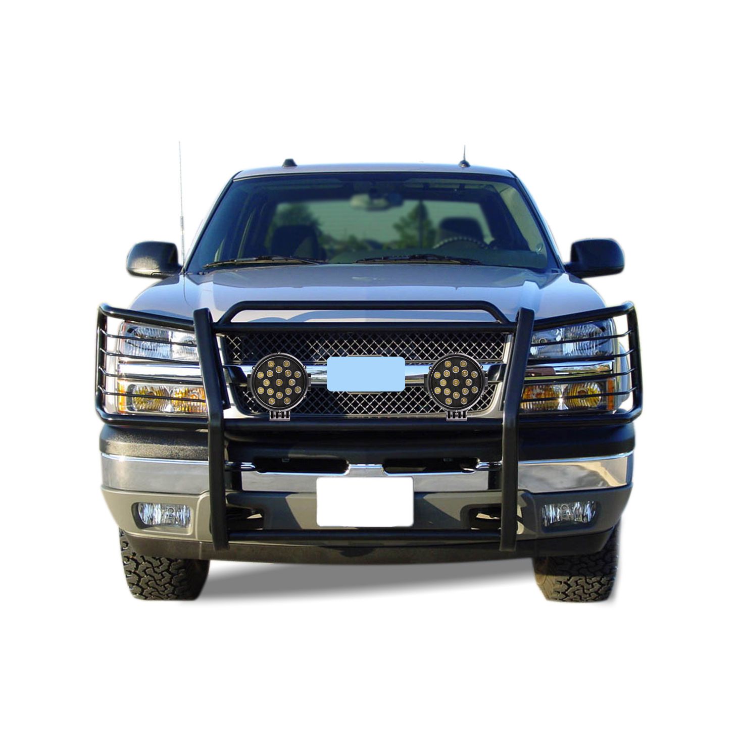 Black Horse Off Road Grille Guard Kit Black Steel Modular Incl. pair of 7.0"Dia. LED Lights w/ Black Trim Rings w/ Wiring Harness and Switch