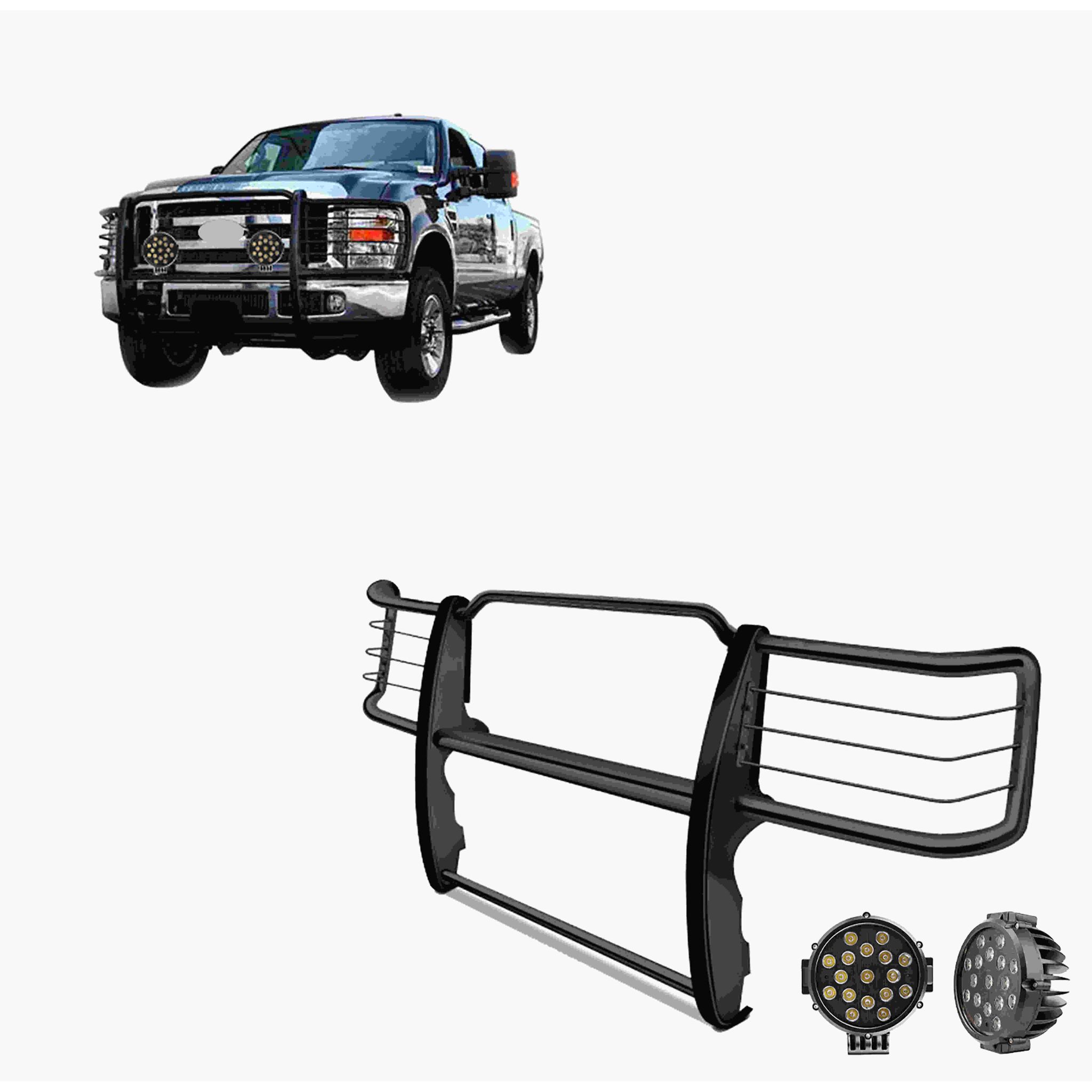 Black Horse Off Road Grille Guard Kit Black Steel Modular Incl. pair of 7.0"Dia. LED Lights w/ Black Trim Rings w/ Wiring Harness and Switch It May Interfere with Vehicles equipped with Emergency Braking Systems, Adaptive Cruise Control and Parking Sensors