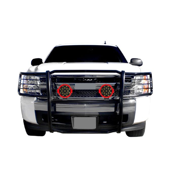 Black Horse Off Road Grille Guard Kit Black Steel Modular Incl. pair of 7.0"Dia. LED Lights w/Red Trim Rings w/ Wiring Harness and Switch Excludes models with Active Grille Shutters 2014 and up, Includes 2019 1500 LD It May Interfere with Vehicles equipped with Emergency Braking Systems, Adaptive Cruise Control and Parking Sensors