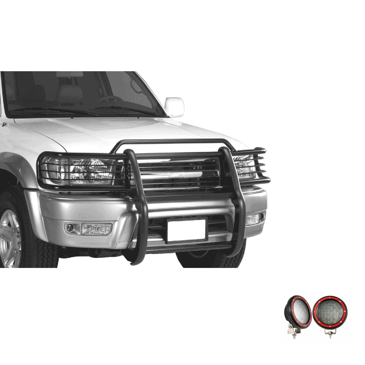 Black Horse Off Road Grille Guard Kit Black Steel Modular Pair of 5.3" Dia. LED Flood Lights w/ Red Trim Rings Wiring Harness and Switch Excl. 2014-20 Limited & 19-20 Nightshade Edition
