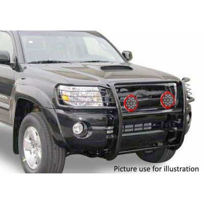 Black Horse Off Road Grille Guard Kit Black Steel Modular Incl. pair of 7.0"Dia. LED Lights w/Red Trim Rings w/ Wiring Harness and Switch