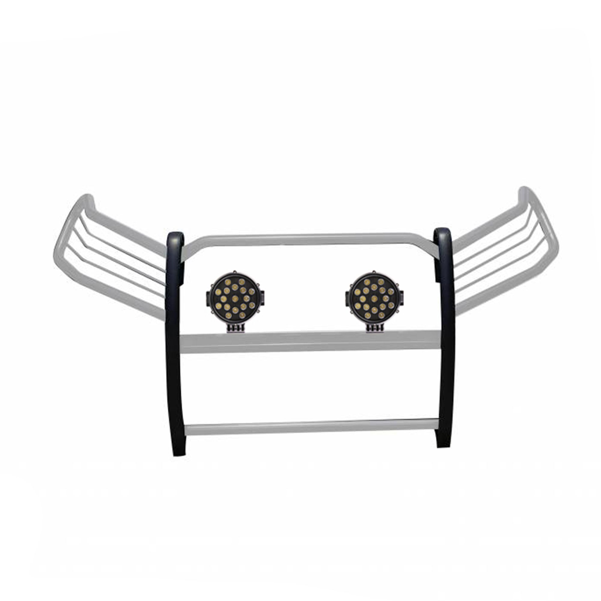 Black Horse Off Road Grille Guard Kit Stainless Steel Stainless Steel Modular Incl. pair of 7.0"Dia. LED Lights w/ Black Trim Rings w/ Wiring Harness and Switch It May Interfere with Vehicles equipped with Emergency Braking Systems, Adaptive Cruise Control and Parking Sensors
