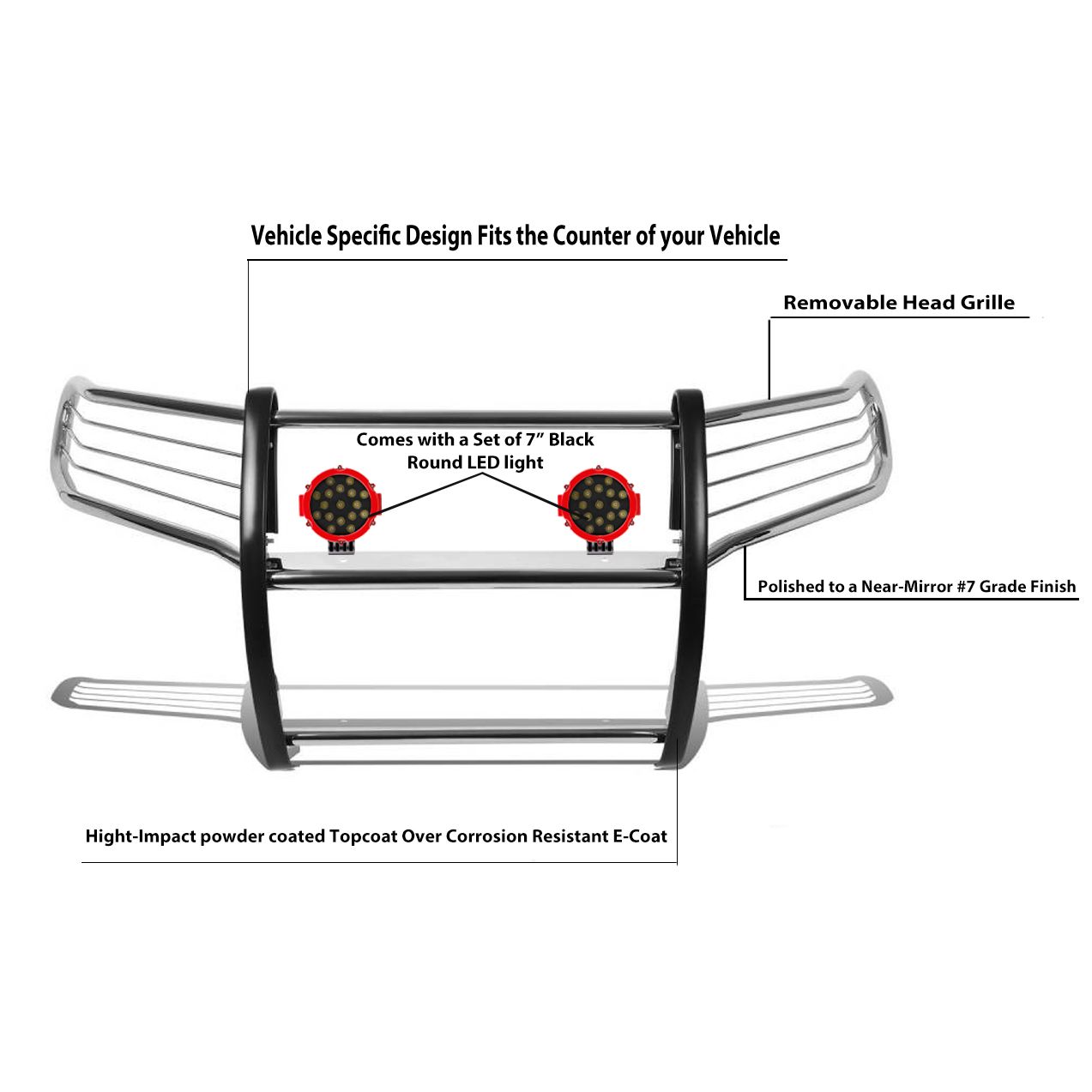 Black Horse Off Road Grille Guard Kit Stainless Steel Stainless Steel Modular Incl. pair of 7.0"Dia. LED Lights w/Red Trim Rings w/ Wiring Harness and Switch Blocks sensors Incl. 2018-on Tacoma with Toyota Safety Sense P It May Interfere with Vehicles equipped with Emergency Braking Systems, Adaptive Cruise Control and Parking Sensors