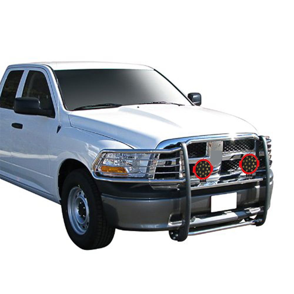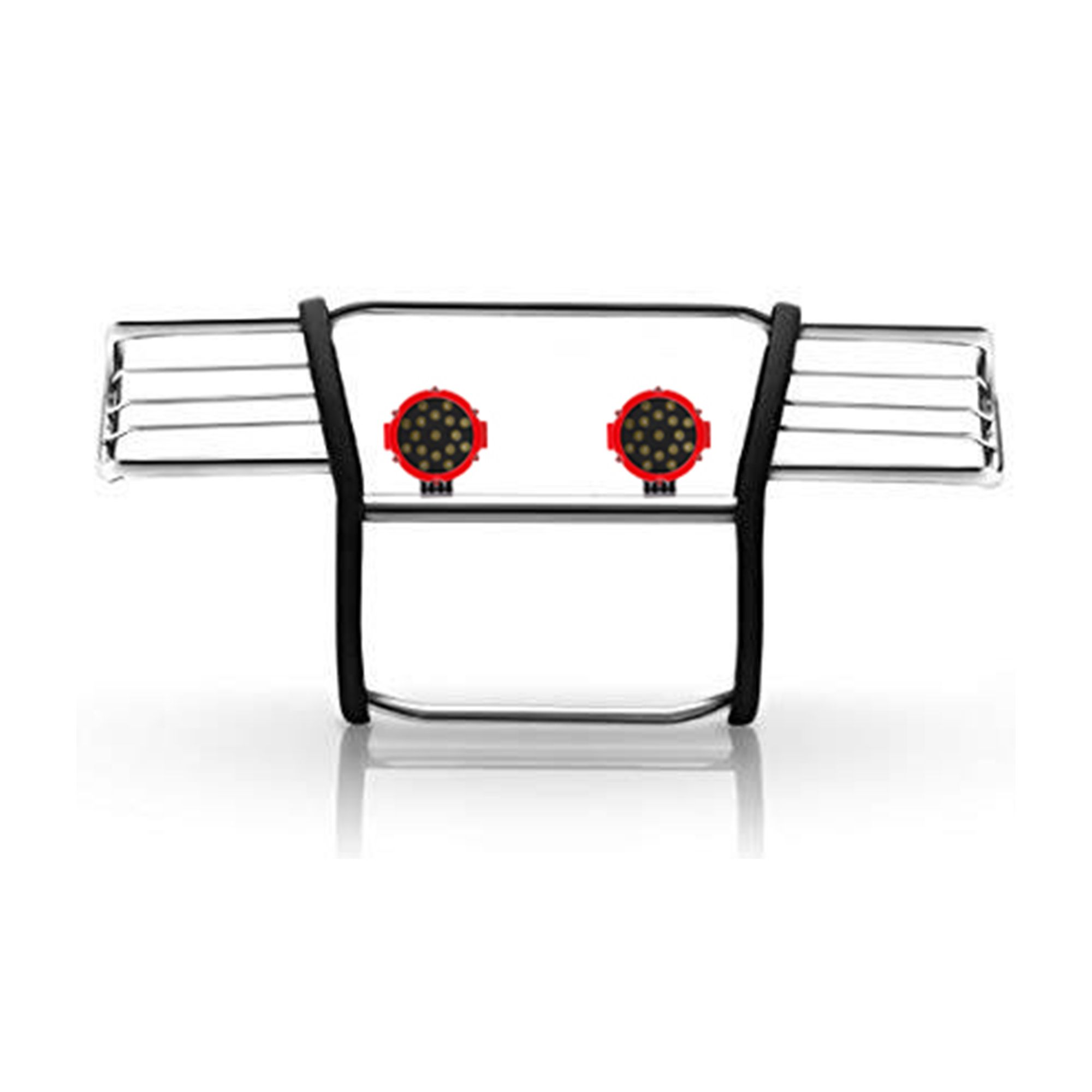Black Horse Off Road Grille Guard Kit Stainless Steel Stainless Steel Modular Incl. pair of 7.0"Dia. LED Lights w/Red Trim Rings w/ Wiring Harness and Switch Trimming of lower bumper valance required on Sport models Excl.Rebel & Warlock Trims It May Interfere with Vehicles equipped with Emergency Braking Systems, Adaptive Cruise Control and Parking Sensors