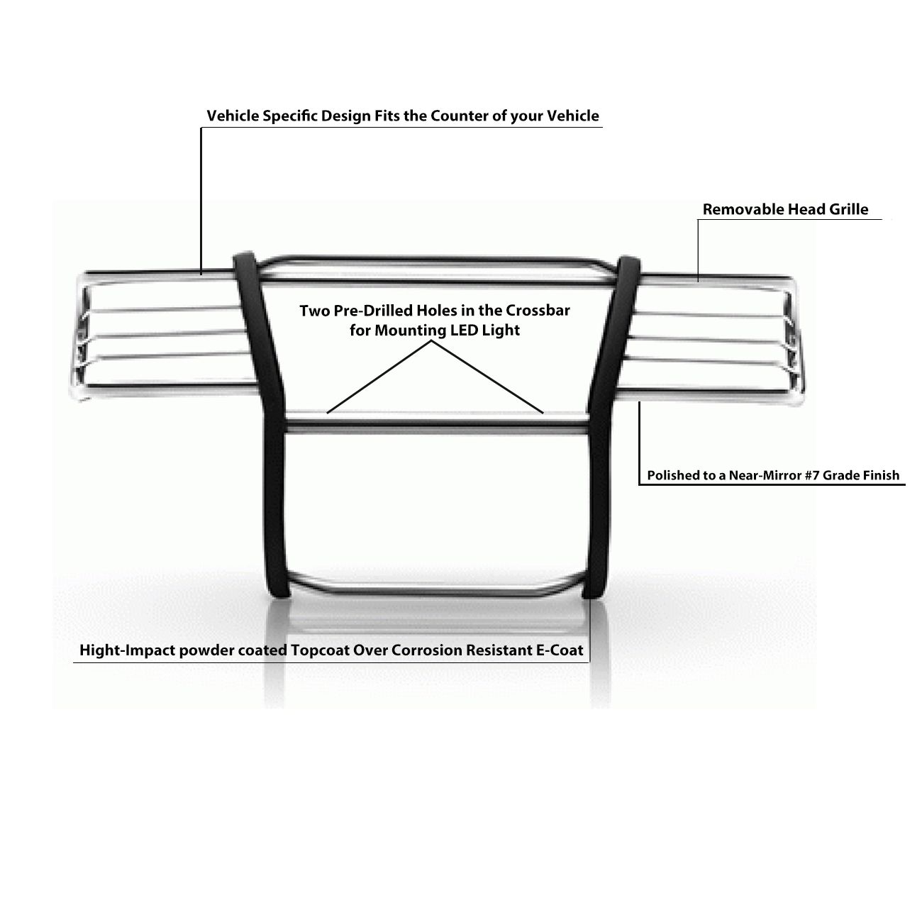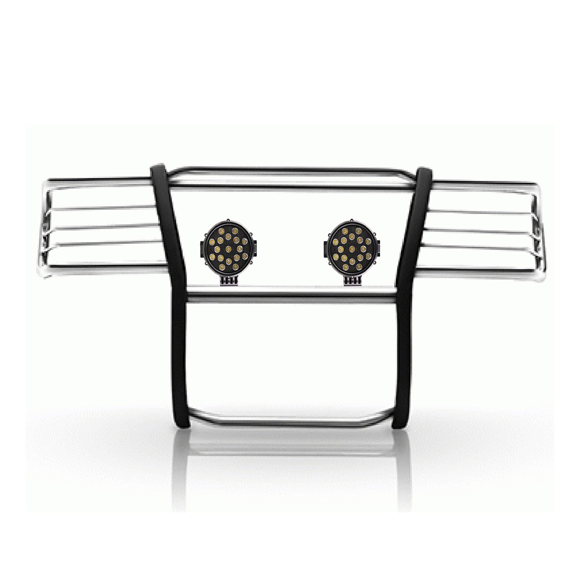 Black Horse Off Road Grille Guard Kit Stainless Steel Stainless Steel Modular Incl. pair of 7.0"Dia. LED Lights w/ Black Trim Rings w/ Wiring Harness and Switch
