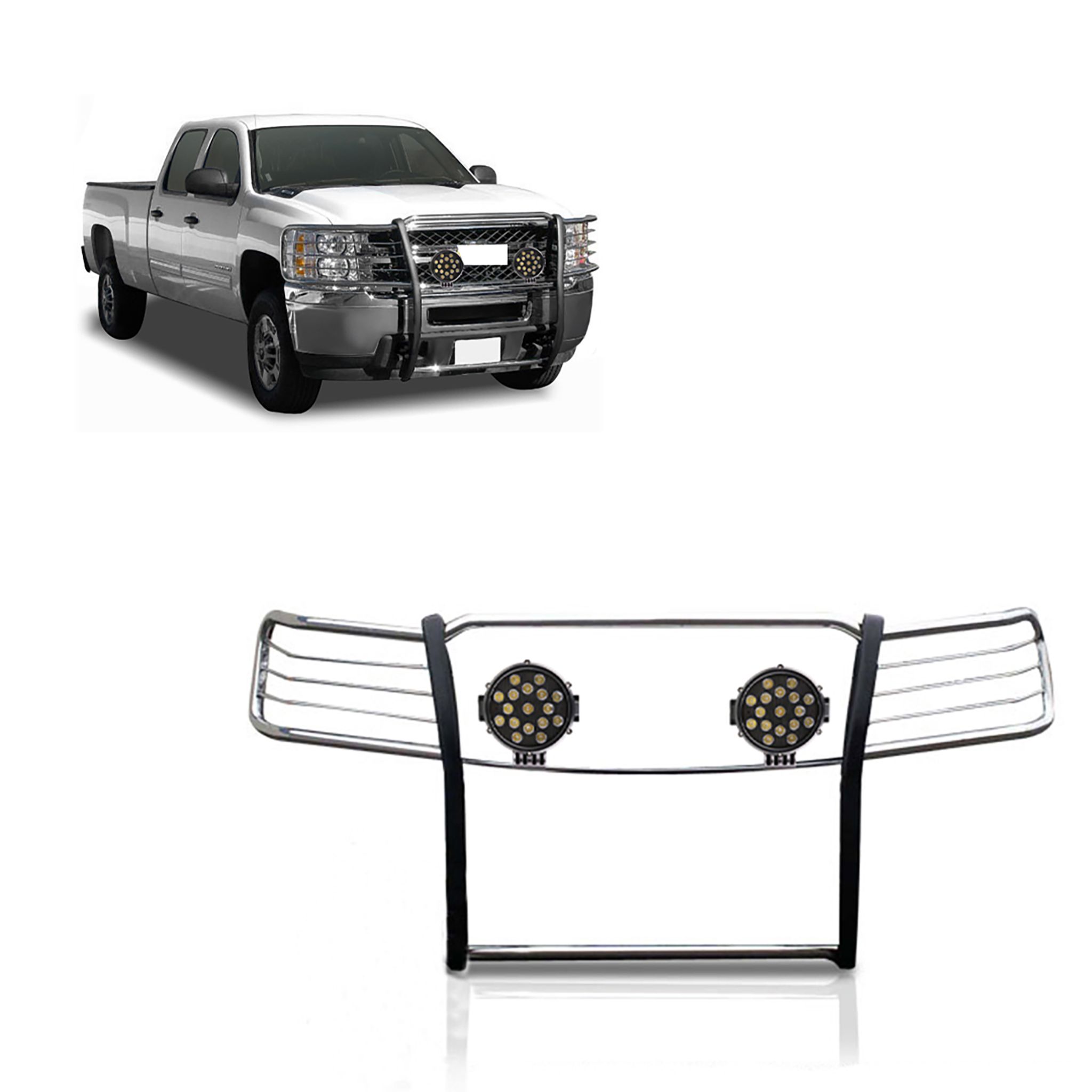 Black Horse Off Road Grille Guard Kit Stainless Steel Stainless Steel Modular Incl. pair of 7.0"Dia. LED Lights w/ Black Trim Rings w/ Wiring Harness and Switch Block Sensors Includes 2019 1500 LD It May Interfere with Vehicles equipped with Emergency Braking Systems, Adaptive Cruise Control and Parking Sensors